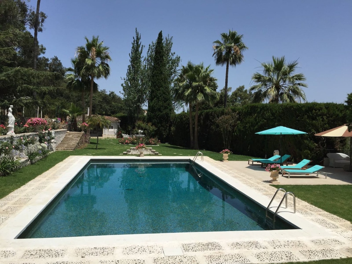 The house faces south and consists of 7 bedrooms, 6 bathrooms and a guest bathroom, a large kitchen with a dining room, 3 reception rooms and dreamy gardens and terraces all with pectacular views. The house has air conditioning in some rooms. The property has a large swimming pool with solarium and bathing area overlooking the Bay of Algeciras and Gibraltar, it also has a barbecue area, idea for al fresco lunch and dinner, all located in the Natural Park of Los Alcornocales with fabulous vegetation that invites you to go on hiking trails around the farm.