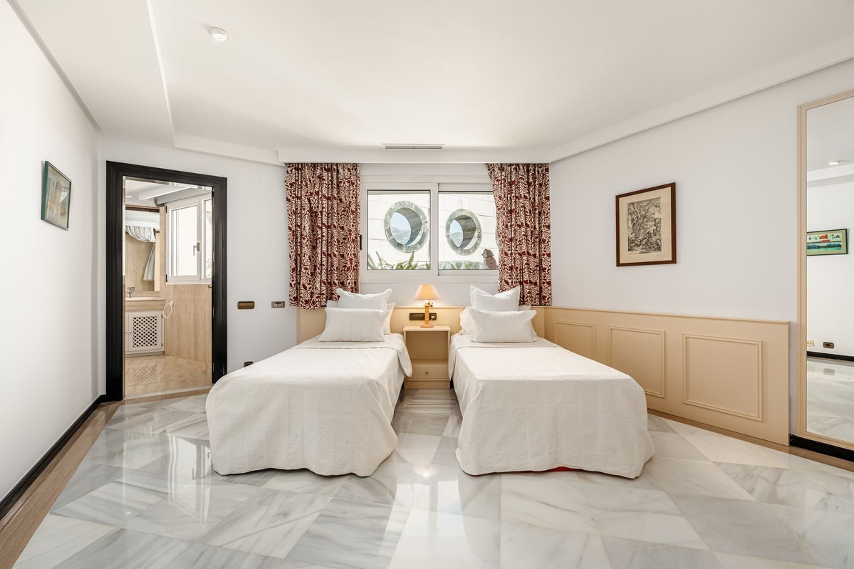 This luxurious apartment for sale is located in the highly coveted frontline beach Mare Nostrum building in Marbella town.