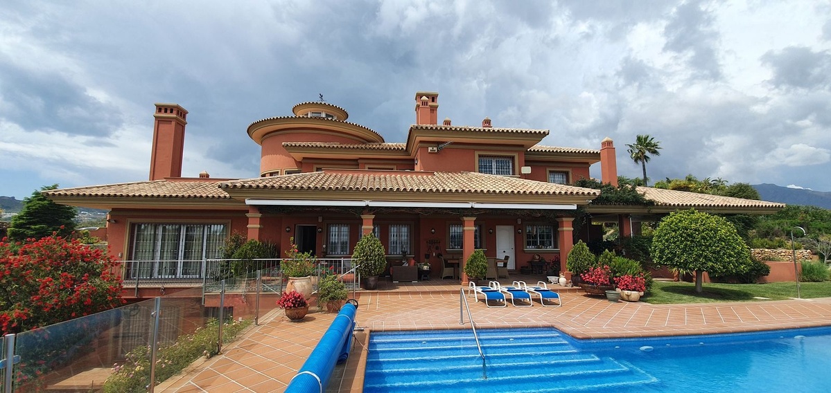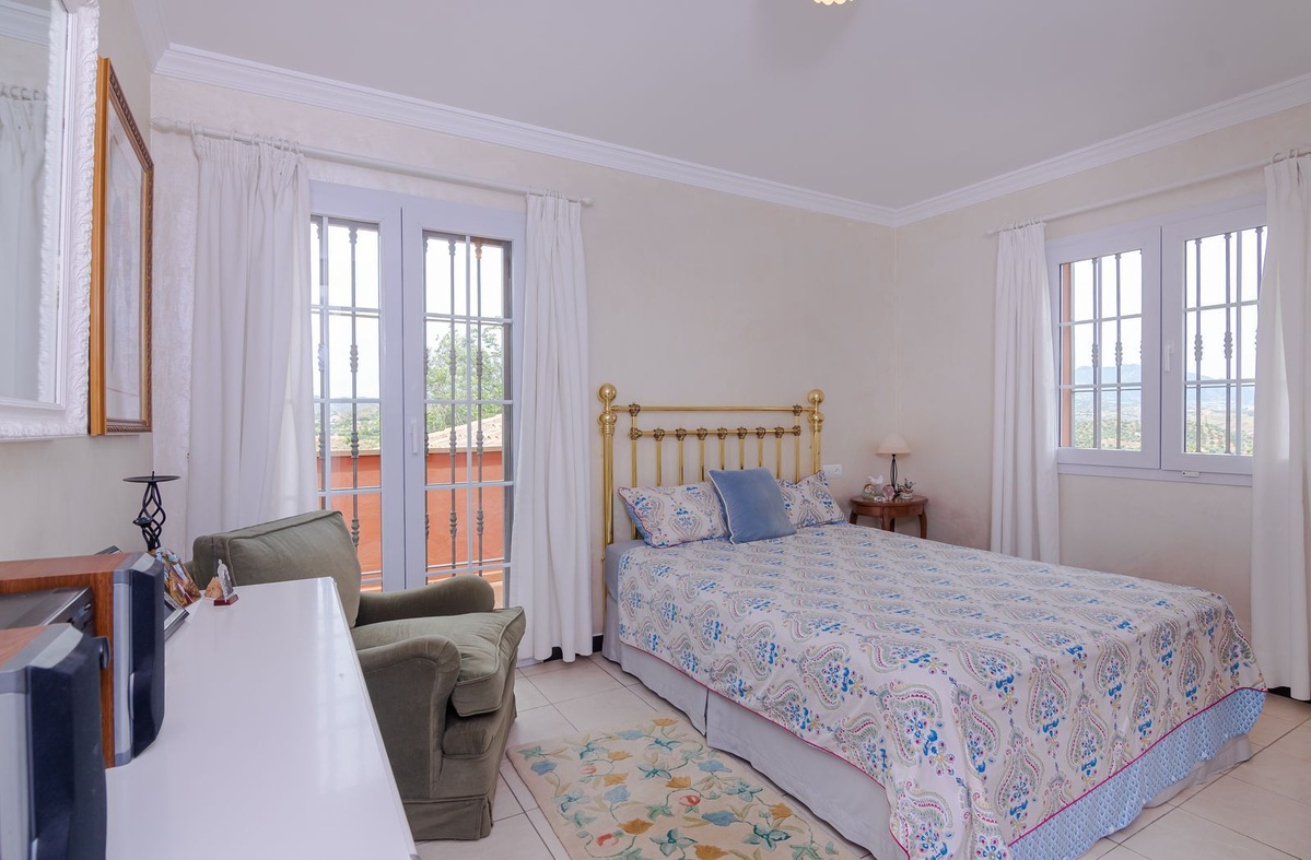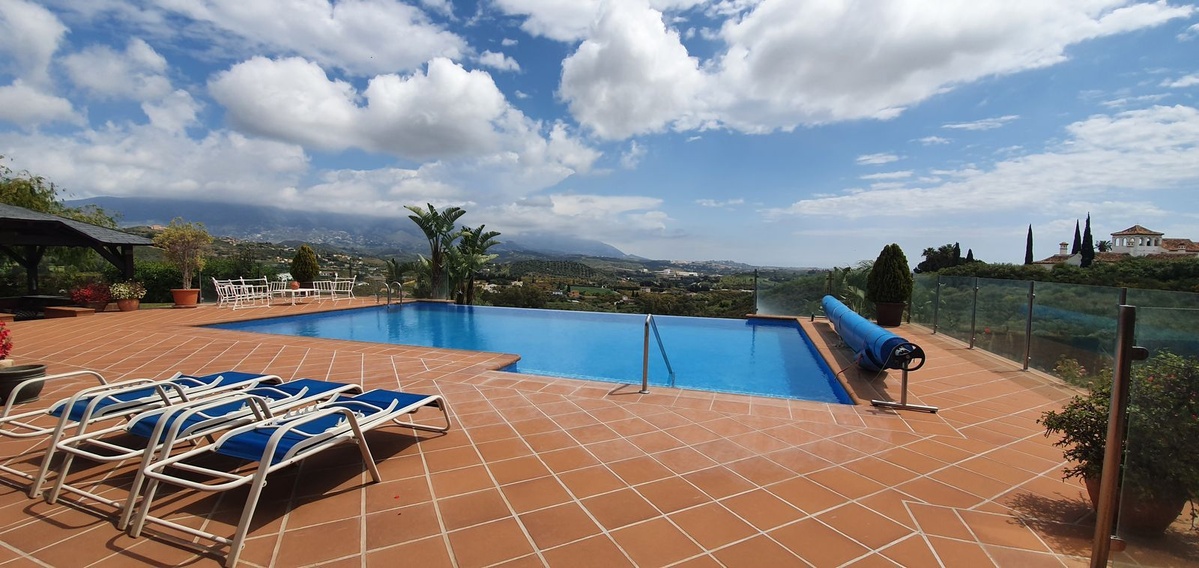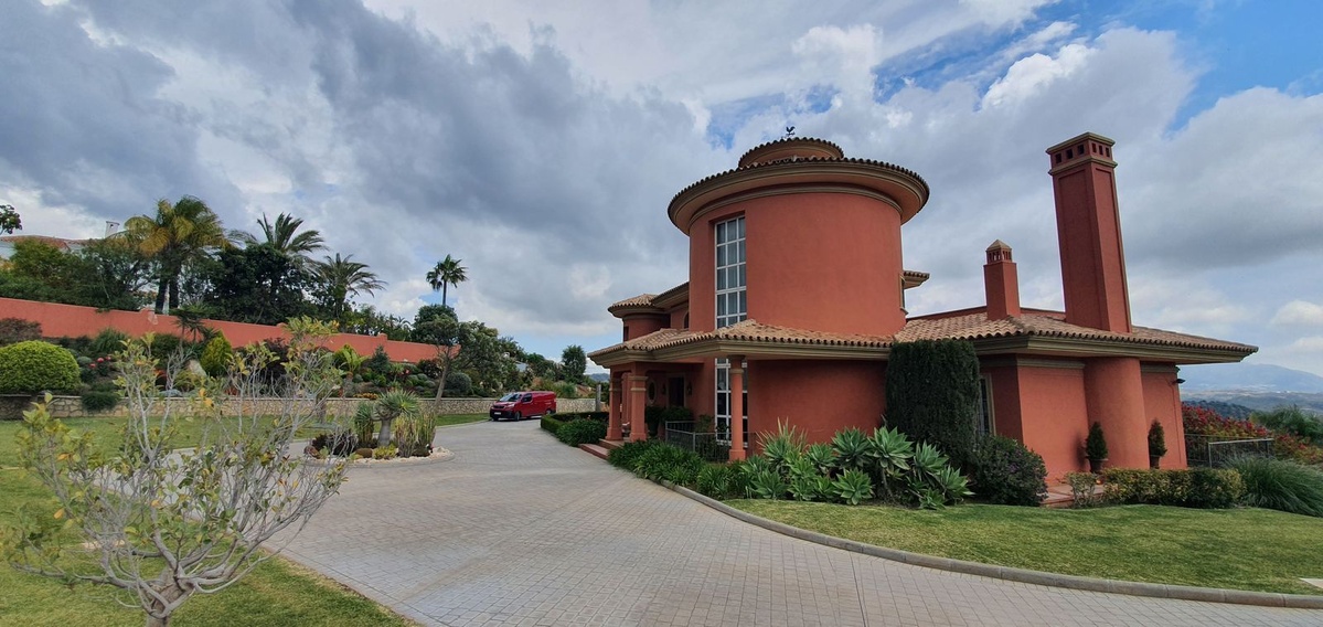 Andalusian style, immaculate property in great condition. 5 bedrooms, 4 bathrooms, 1 toilet, sauna, private infinity pool overlooking the sea. Very quiet and very private area to enjoy the tranquility and atmosphere of the area. The property consists of 623 m2 built on a 10,000m2 plot. 360º view of golf, mountains, sea and more.