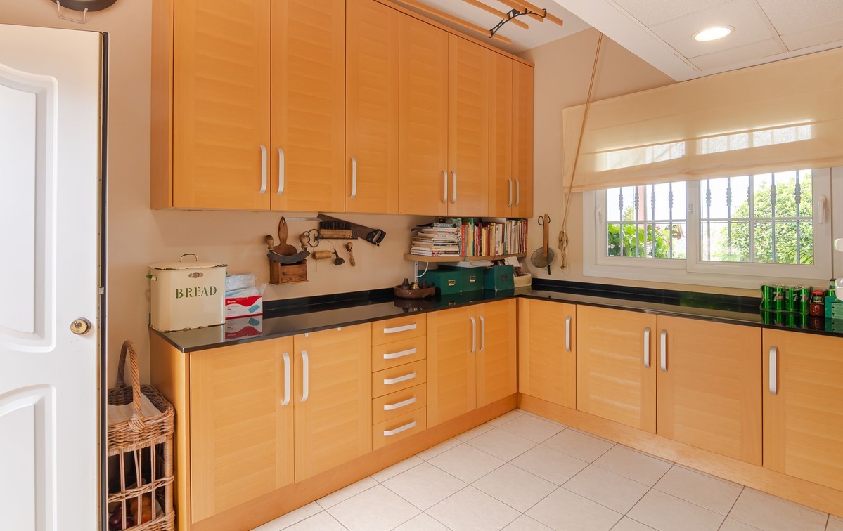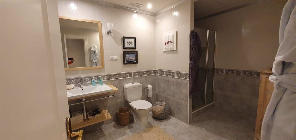 On the ground floor we have the basement area, which can be adapted for a games room, cinema, gym, whatever suits you best with more than 80 square meters and access to the garden, 3 bedrooms, one of them with an en-suite bathroom and another bathroom to share between both rooms. From this floor we have direct access to the Sauna area with a complete bathroom for the pool area.