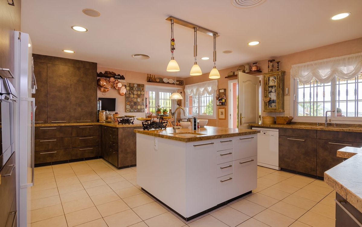 You enter a very stylish hall, it is a property that combines the rustic Andalusian style and the modern. On this floor we find 2 very spacious rooms with direct access to the infinity pool area, a dining area for more than 14 diners, a large kitchen of the highest standing, a large pantry prepared for large events, a barbecue, infinity pool of more than 60 square meters heated, gardens in perfect condition, area of fruit trees. On this floor we also have access to the rest of the property's floors, including a separate one for the service apartment.