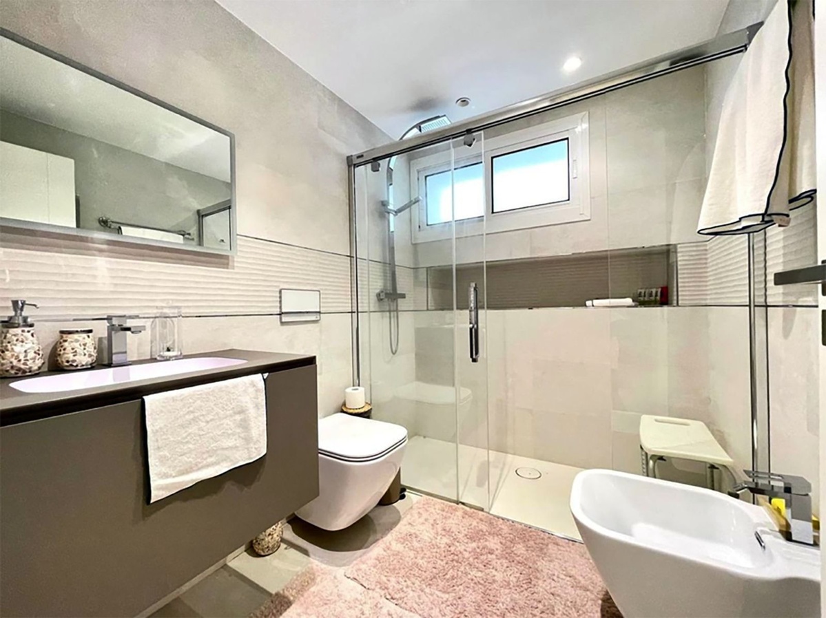 The apartment with a cozy entrance hall, a fully furnished and equipped kitchen, 3 beautiful bedrooms with en-suite bathrooms, a spacious and bright living room with direct access to a spectacular south facing terrace with private pool and the spectacular areas of communal pools and gardens.
