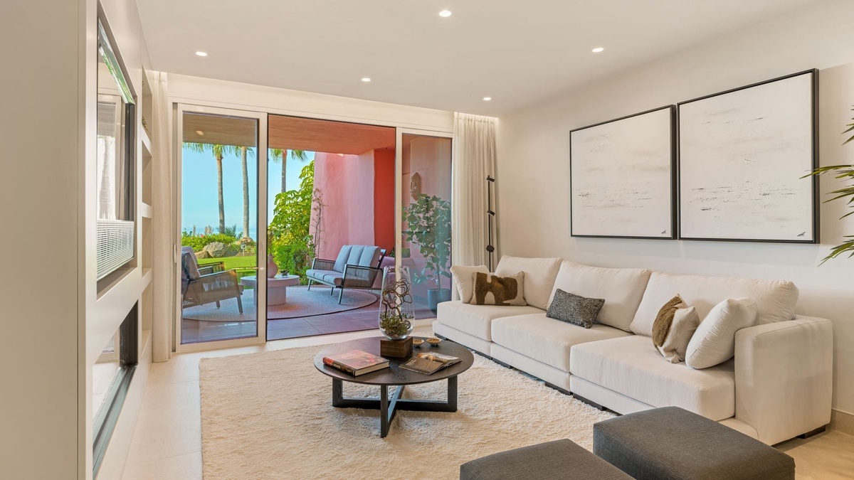 Totally renovated top quality 3 bedroom ground floor apartment in Cabo Bermejo a frontline beach development in Guadalmansa, on the New Golden Mile, Estepona