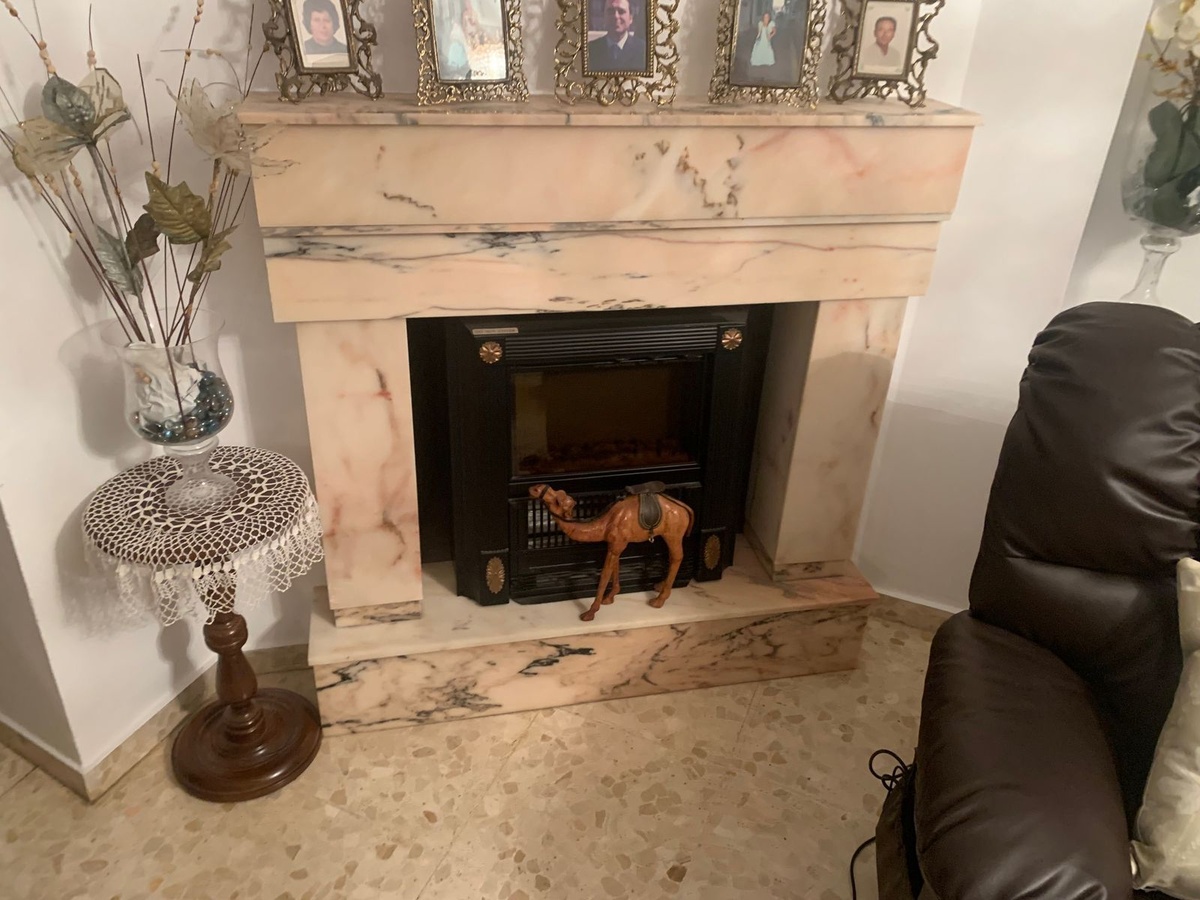 The house has three bedrooms, one bathroom and a toilet, a ten-square-meter patio, two small balconies, a kitchen, a living room with a fireplace, and a very spacious entrance.