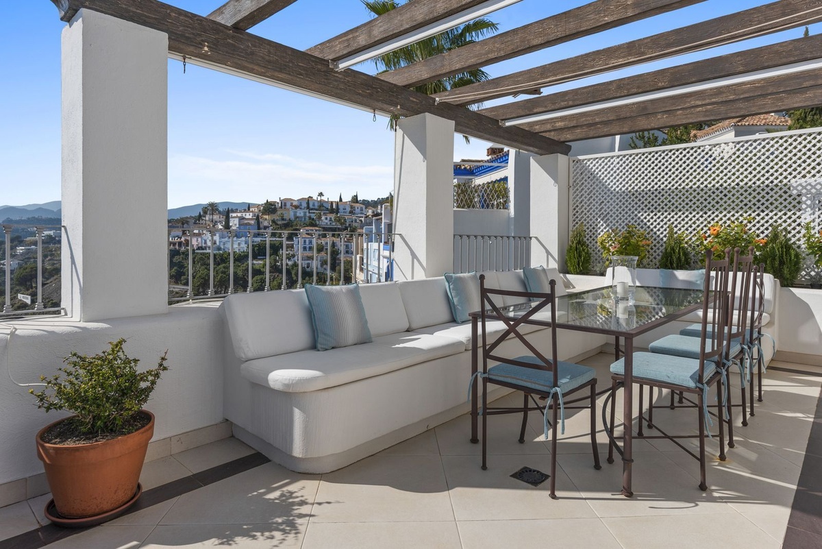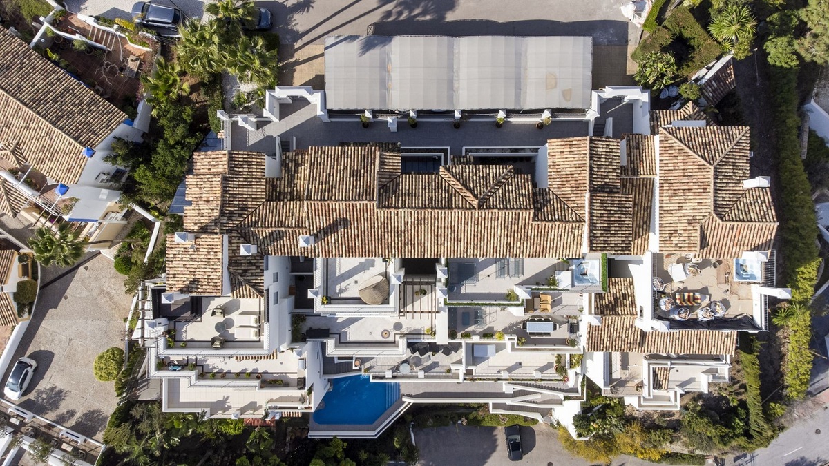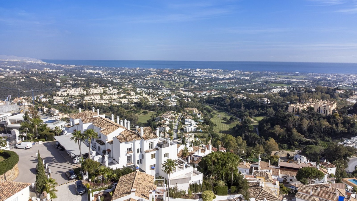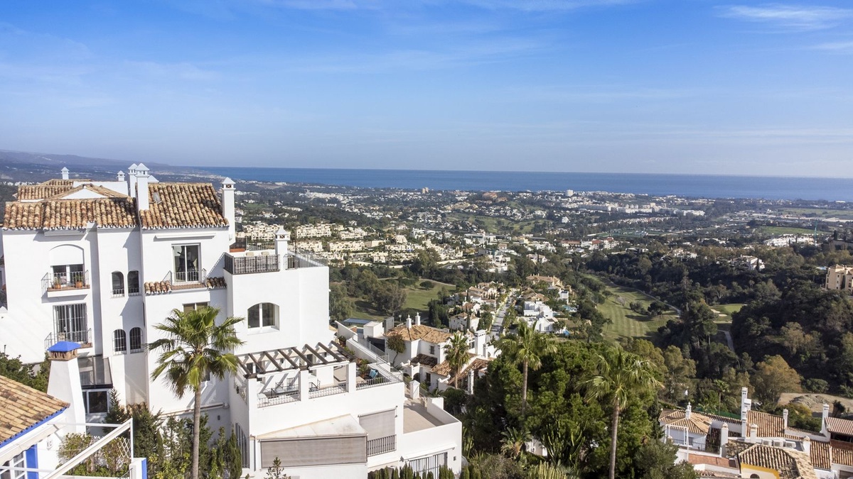 A unique large duplex penthouse for sale in La Heredia, Benahavis, sitting above a modern urbanisation, provides breathtaking panoramic views along with excellent security with 24/7 surveillance.