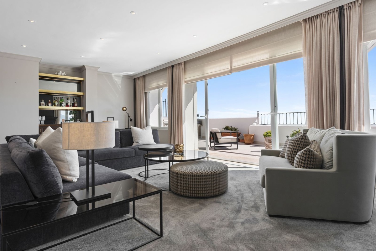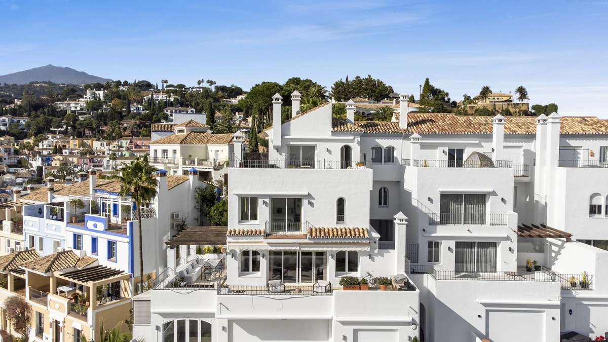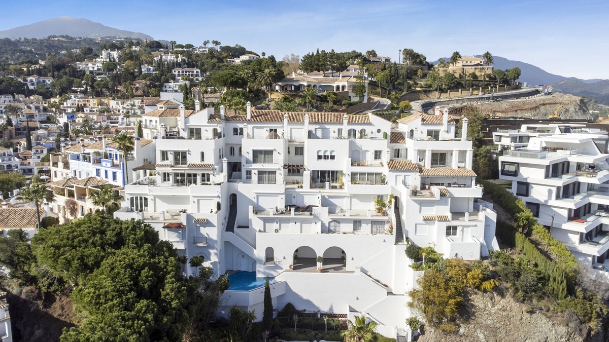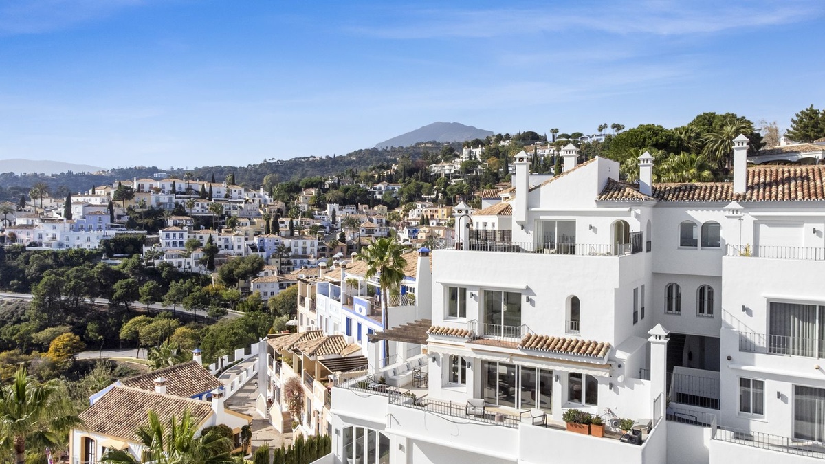 A unique large duplex penthouse for sale in La Heredia, Benahavis, sitting above a modern urbanisation, provides breathtaking panoramic views along with excellent security with 24/7 surveillance.