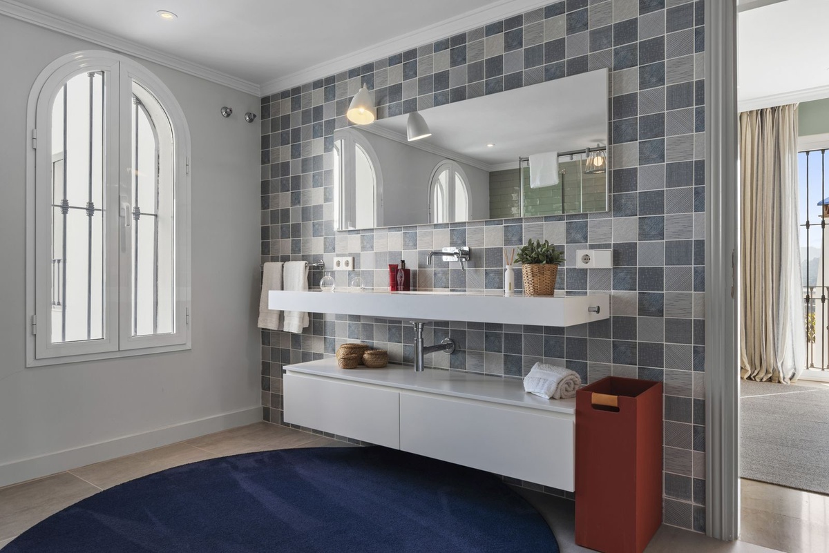 The property has 4 bedrooms with 3 bathrooms plus one guest toilet spanning over a total of 425 m2 built including the terraces.