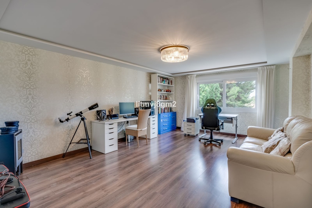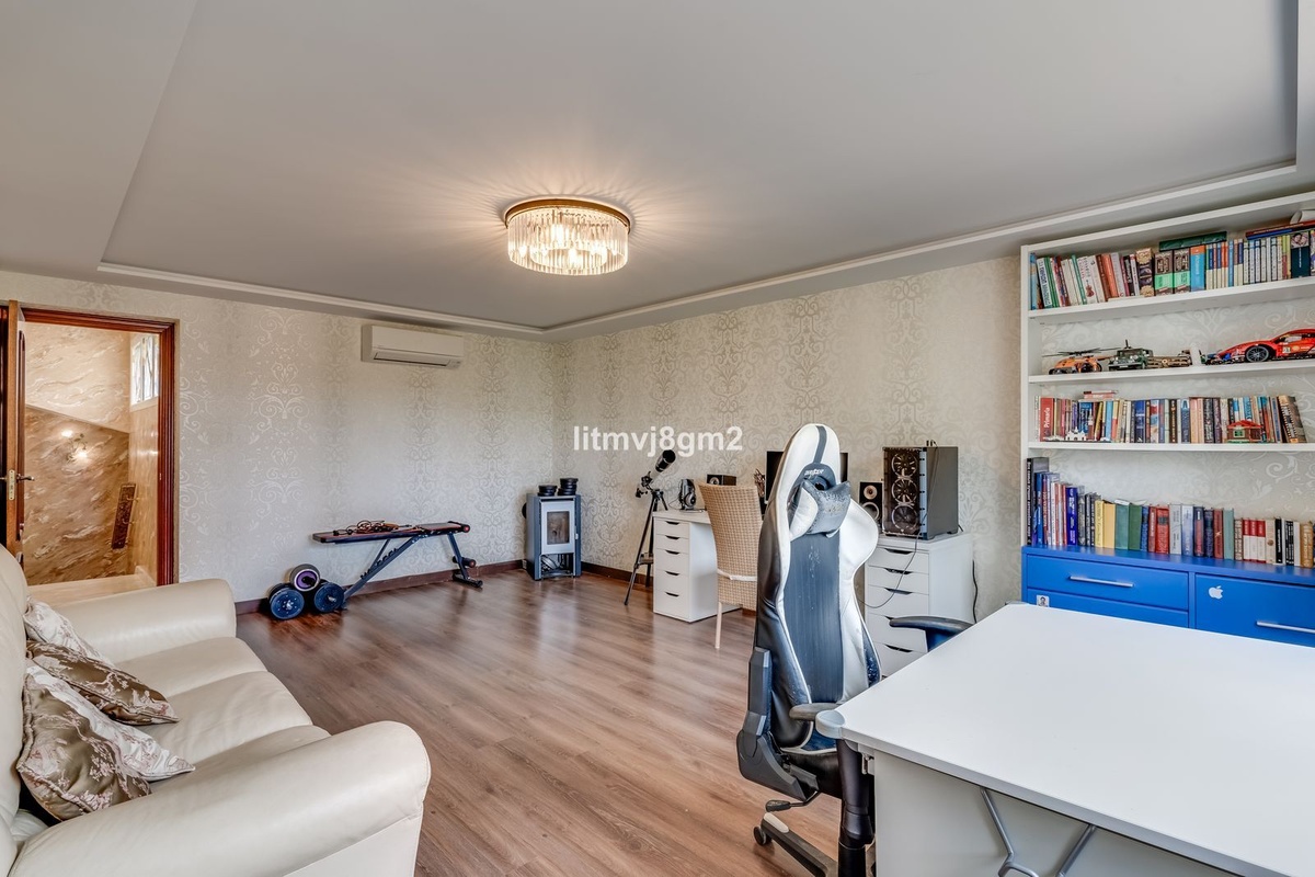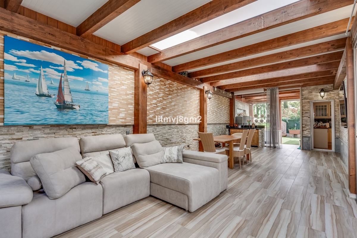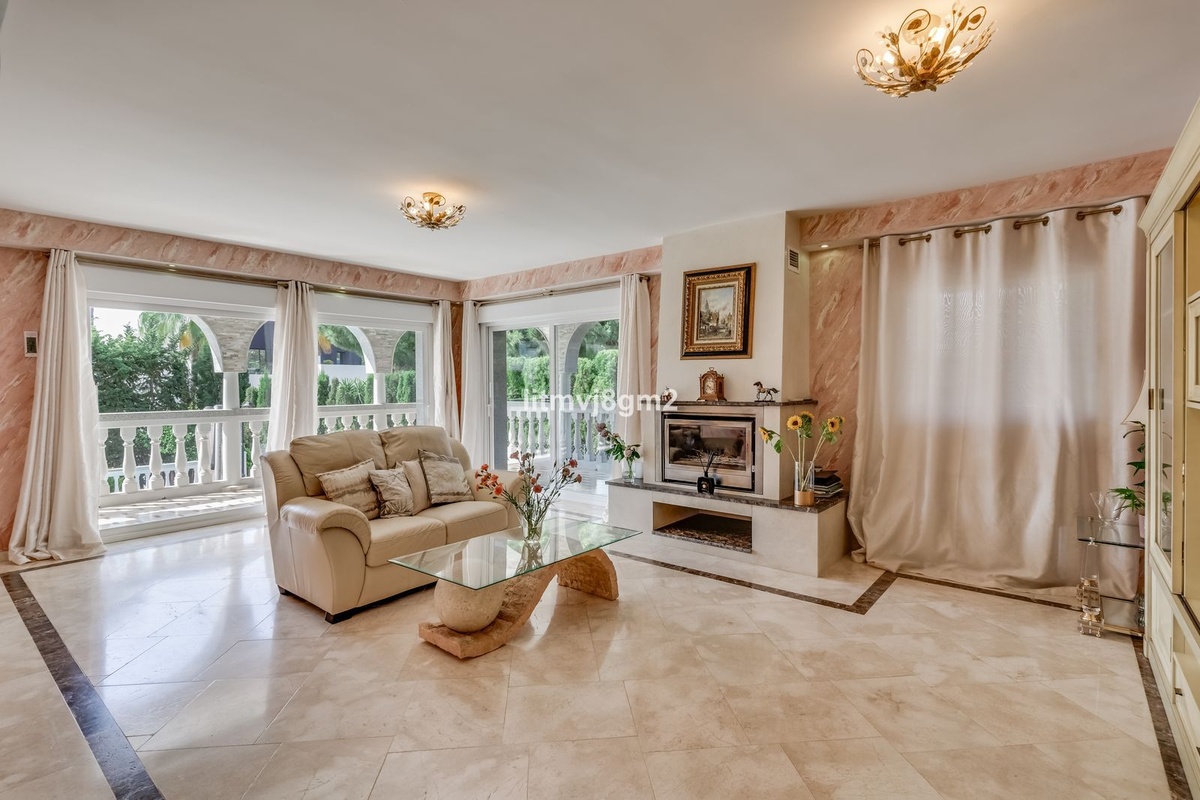 This luxurious four-bedroom villa, located in the peaceful area of lower Artola / Hacienda Las Chapas, just 5 minuntes walk to the sea, is the epitome of elegance and comfort. Boasting a classic design with high-end finishes, the property features an abundance of marble, adding to its opulent charm. The interior is bathed in natural light, enhancing the meticulously crafted details throughout the home.