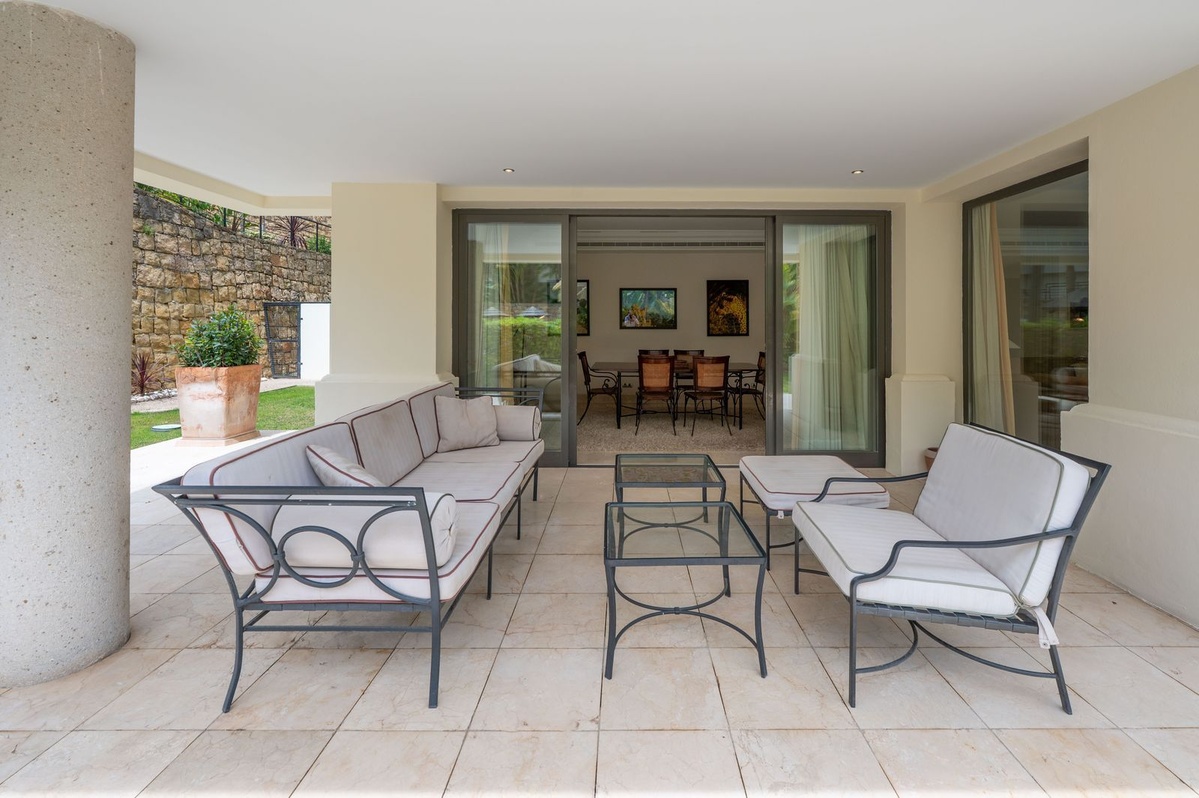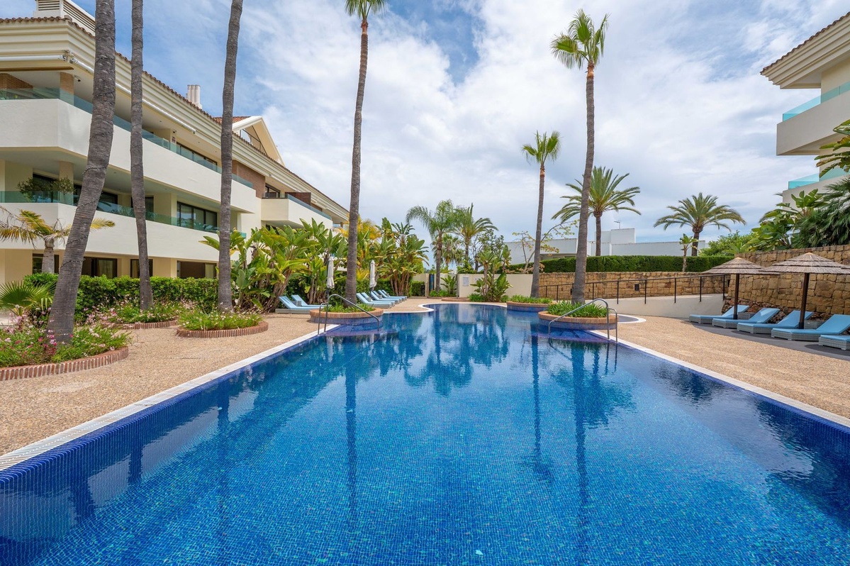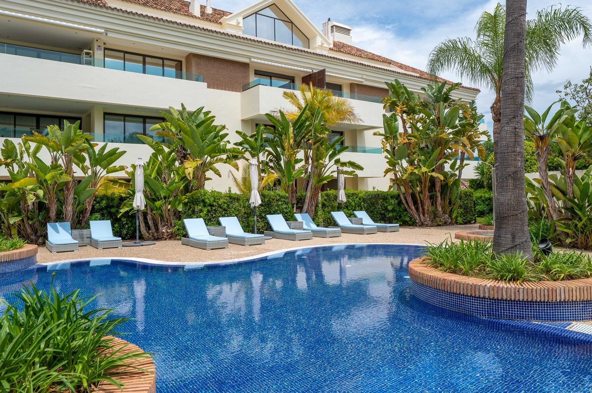 This 3 bedrooms southwest-facing ground floor apartment is located in the exclusive residential area of Los Monteros, renowned for its high security and the famous La Cabane beach club, at just 6 min walking from the most beautiful beaches. It is part of the only existing luxury apartment complex in this area, which features tropical gardens and an elegant swimming pool within a fully gated community.