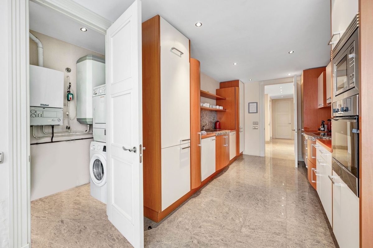 The entire apartment is equipped with underfloor heating. A separate kitchen comes equipped with a breakfast area and an adjoining laundry room, offering practical and convenient living.