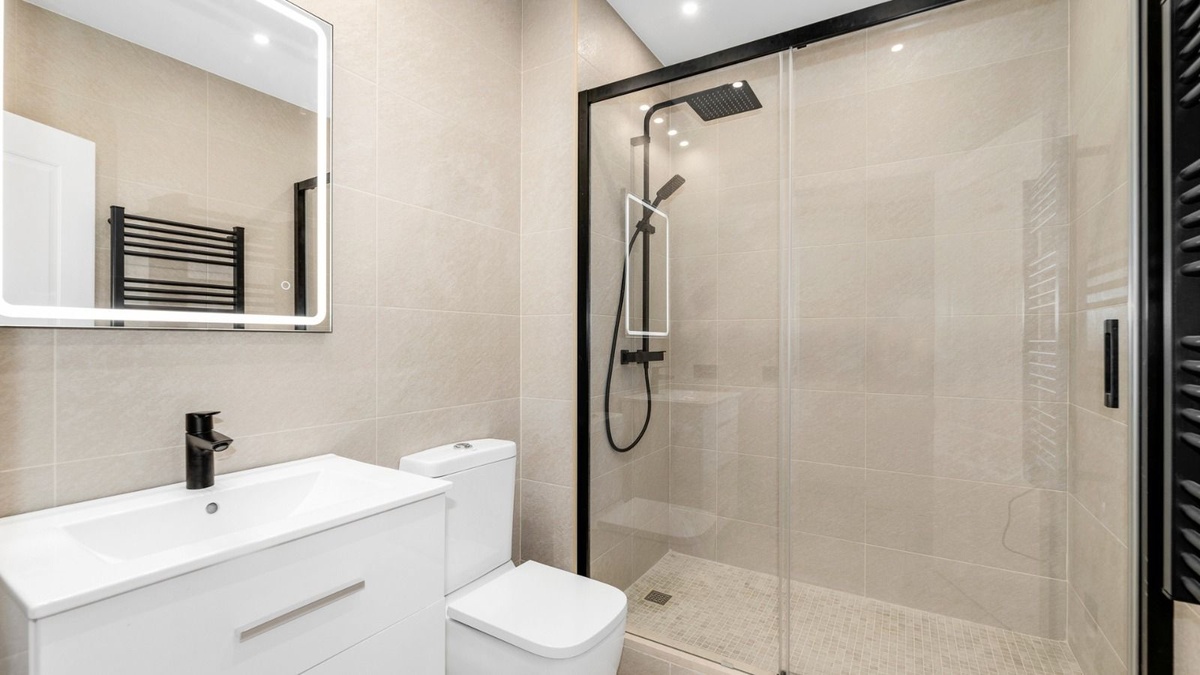 The upper level features two large bedrooms sharing a bathroom that can easily be divided into two en-suite baths. With an elevator connecting all three levels and a garage for two cars, this villa offers convenience and comfort.