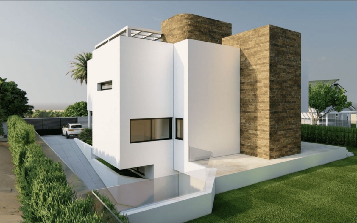 This property will be built on 3 floors with a PVE panoramic elevator consisting of an entrance hall, 3 bedrooms with ensuite bathrooms, and a garden with a pool , a few trees and scrubs and a pool.