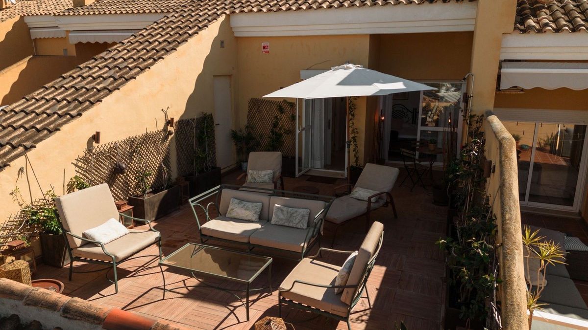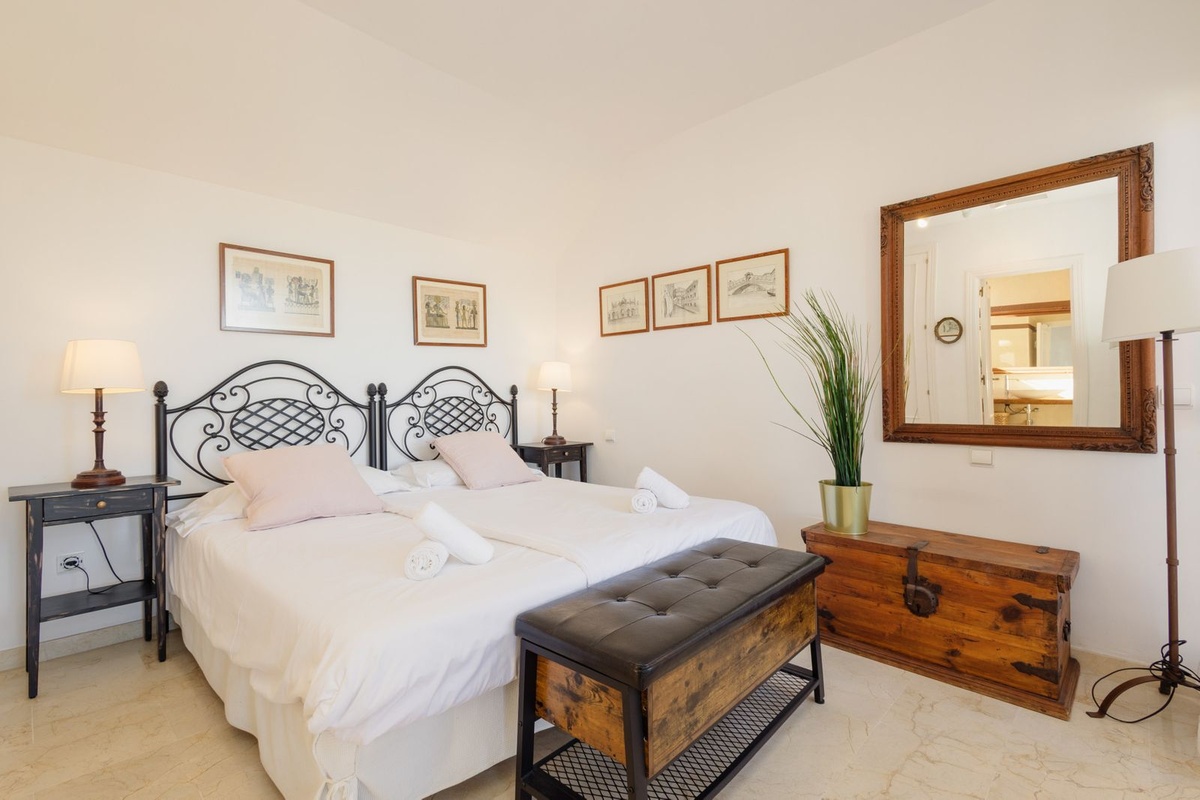 The master bedroom has a 180x200m king-size bed and blinds for a good night's sleep. You also have direct access to the beautiful terrace, which is equipped with an outdoor sofa with a small coffee table and 2 sun loungers to enjoy the sun.