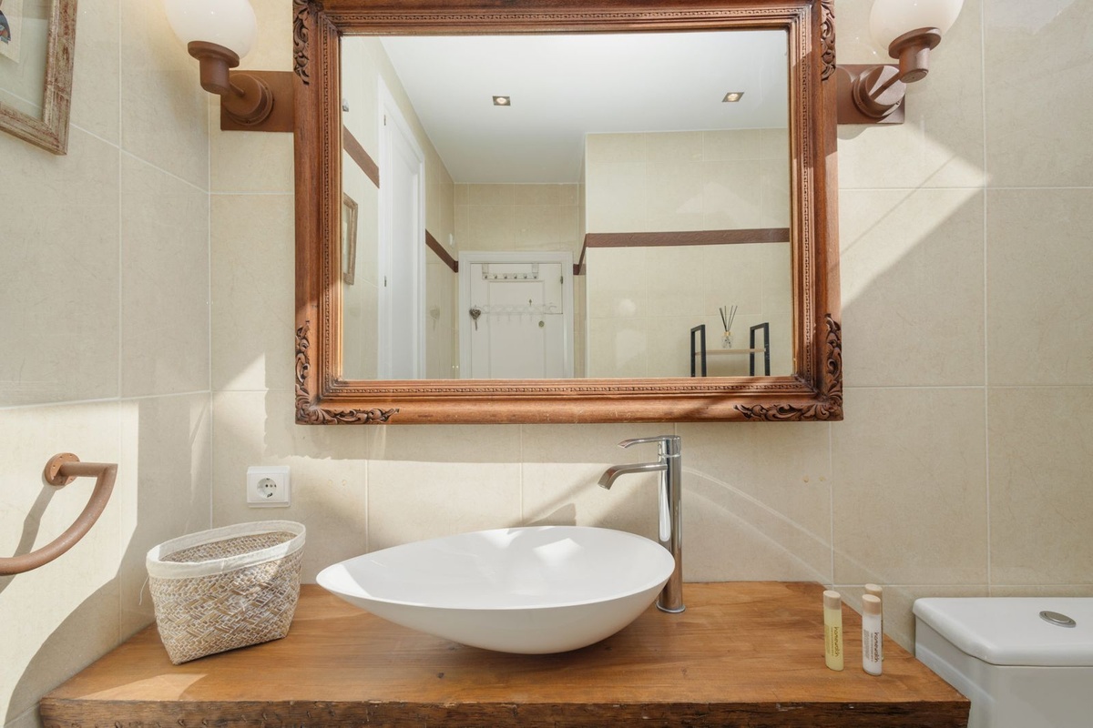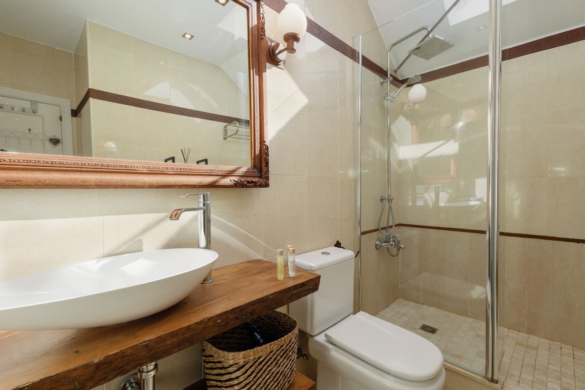 The bathroom in the main bedroom has a shower, sink, bidet and a toilet. The other bathroom has a bathtub with a glass shower, a sink and a toilet. You also have in both bathrooms a hair dryer.