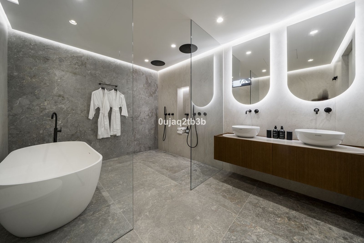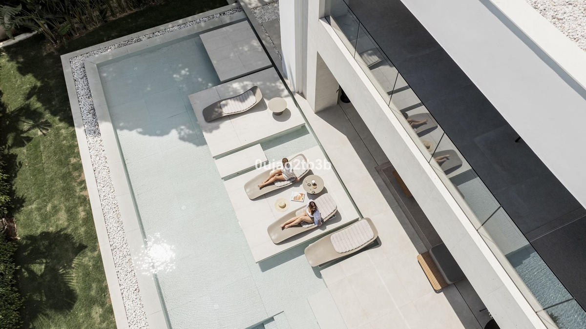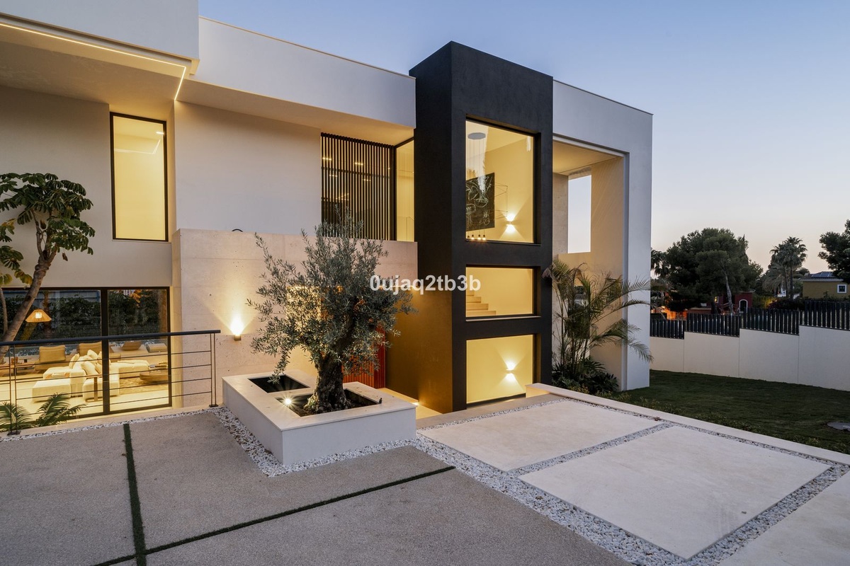 Stunning brand new villa in the best location in Marbella. Perfectly communicated to the main roads that drive you to the airport, Puerto Banús and just a few minutes away from Marbella’s center. This state-of-the-art new villa occupies a 1.050m2 plot positioned towards the South views and orientation that allow for maximizing all the features included in the house. The house was designed to enjoy the outside at the same time as the interior thanks to the oversized doors and windows.