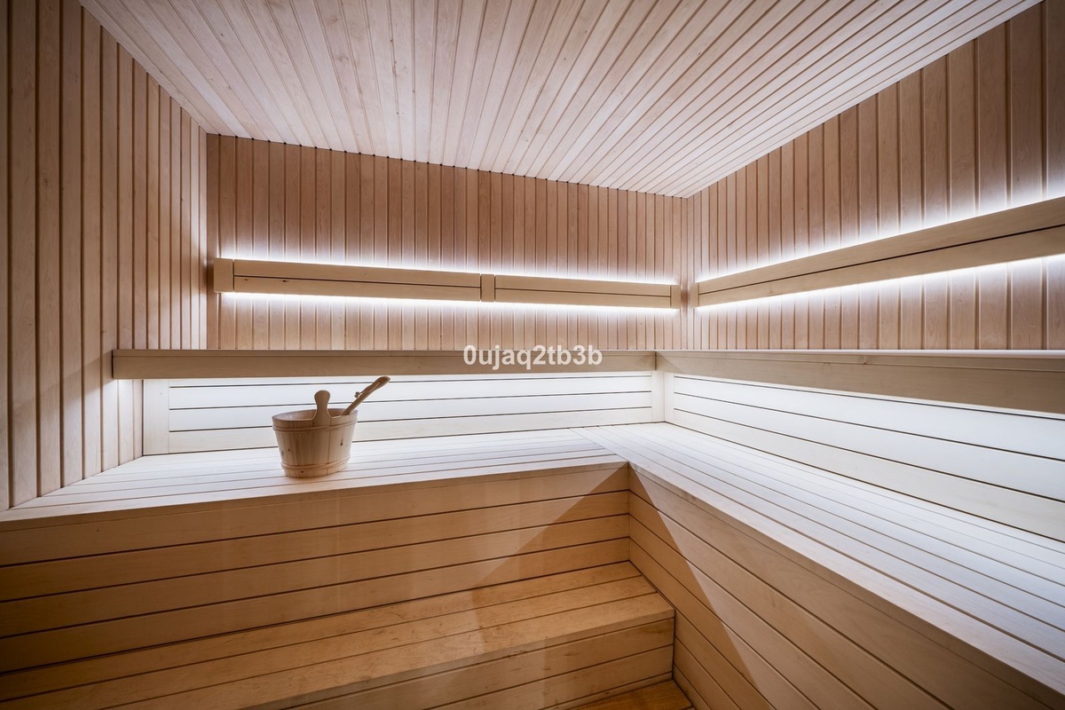 The impressive basement was designed to pamper yourself. A sauna and a gym together with a home-cinema-room together with a en-suite bedroom.