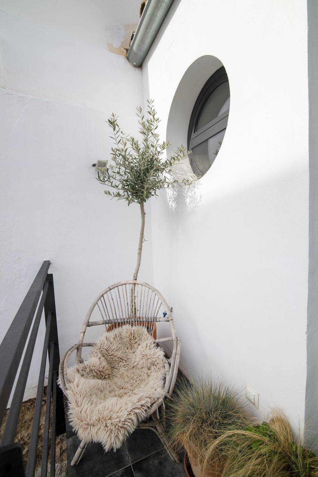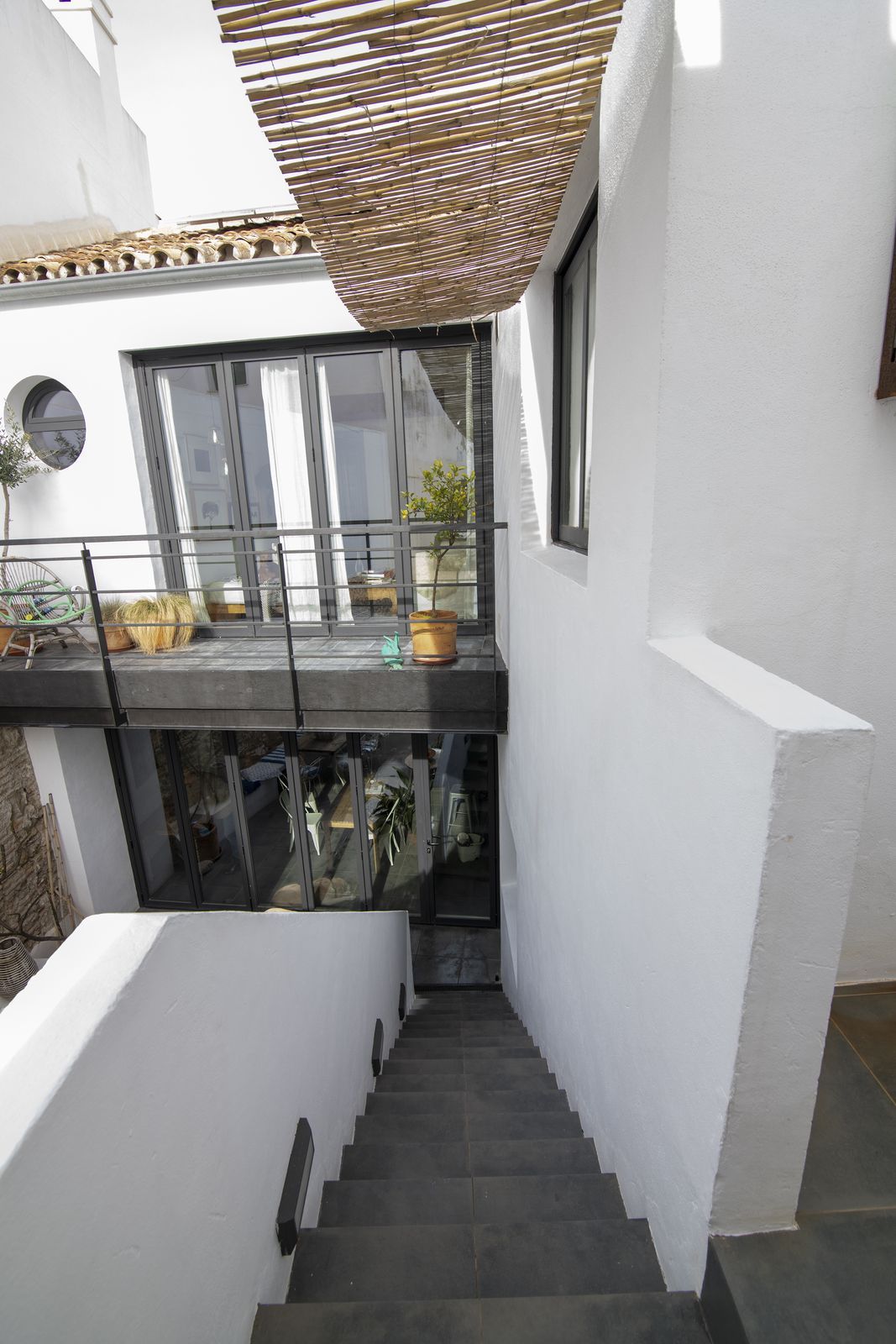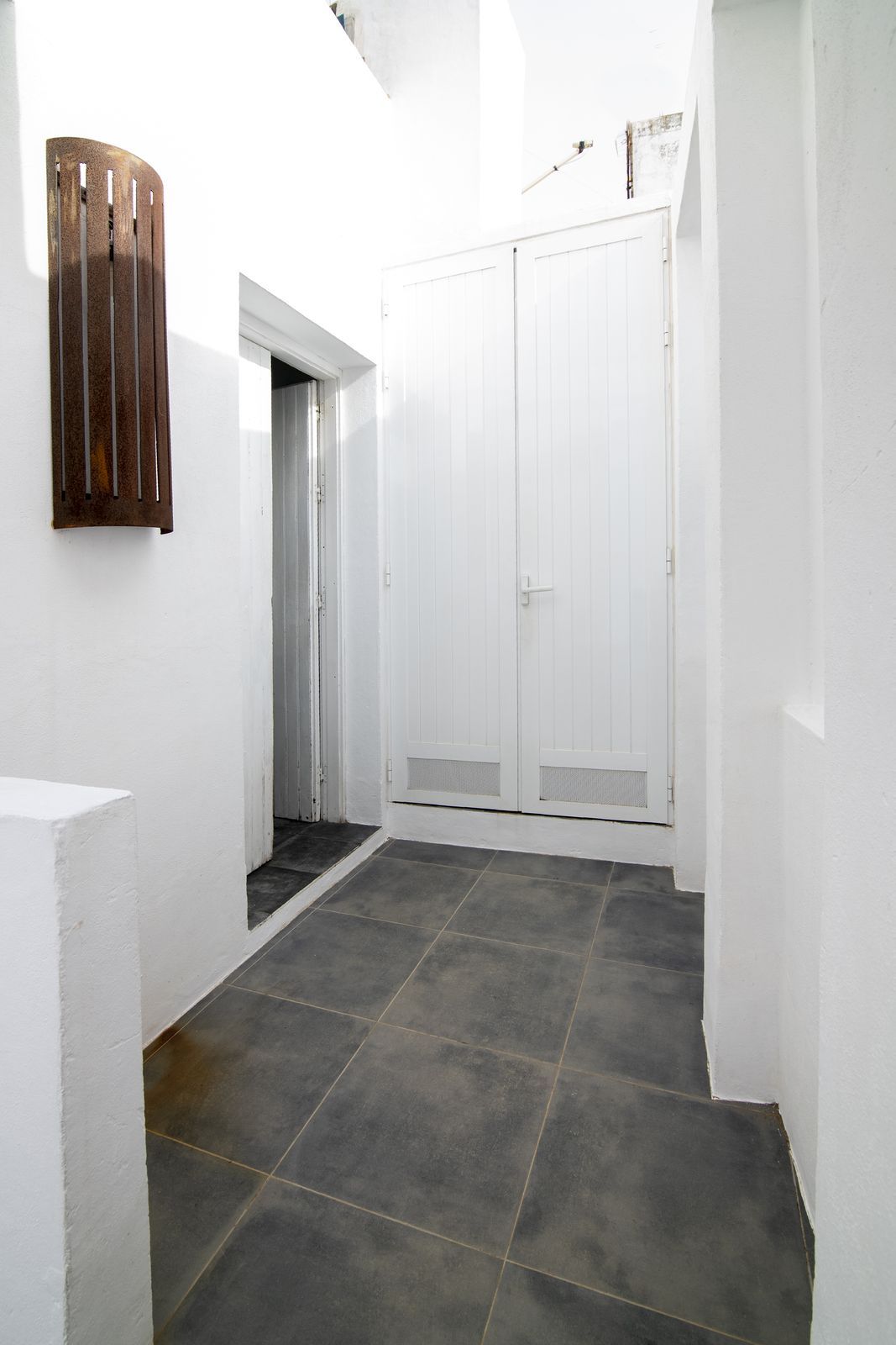 On the opposite side of the patio is the second house, which includes an additional room and bathroom.