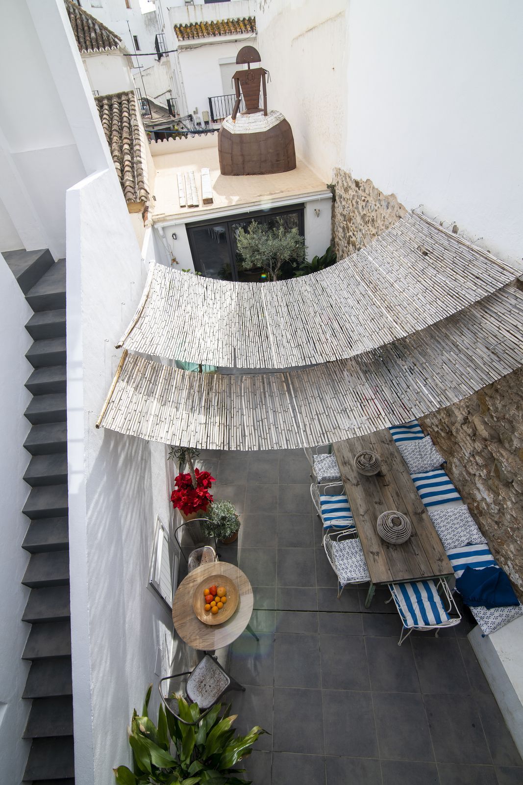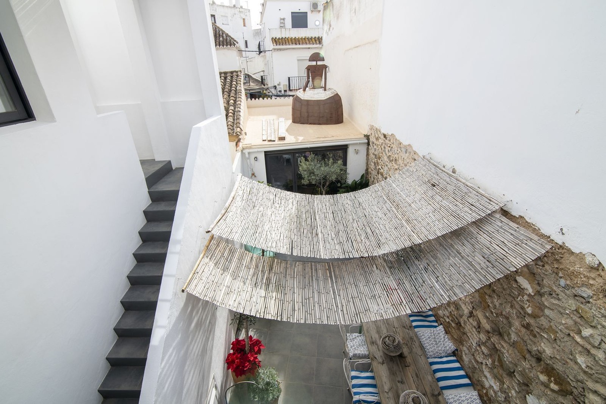 This extraordinary townhouse, located in the charming old center of Estepona, offers a rare opportunity with its two separate houses joined together, each featuring its own entrance on different streets.