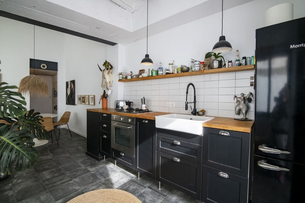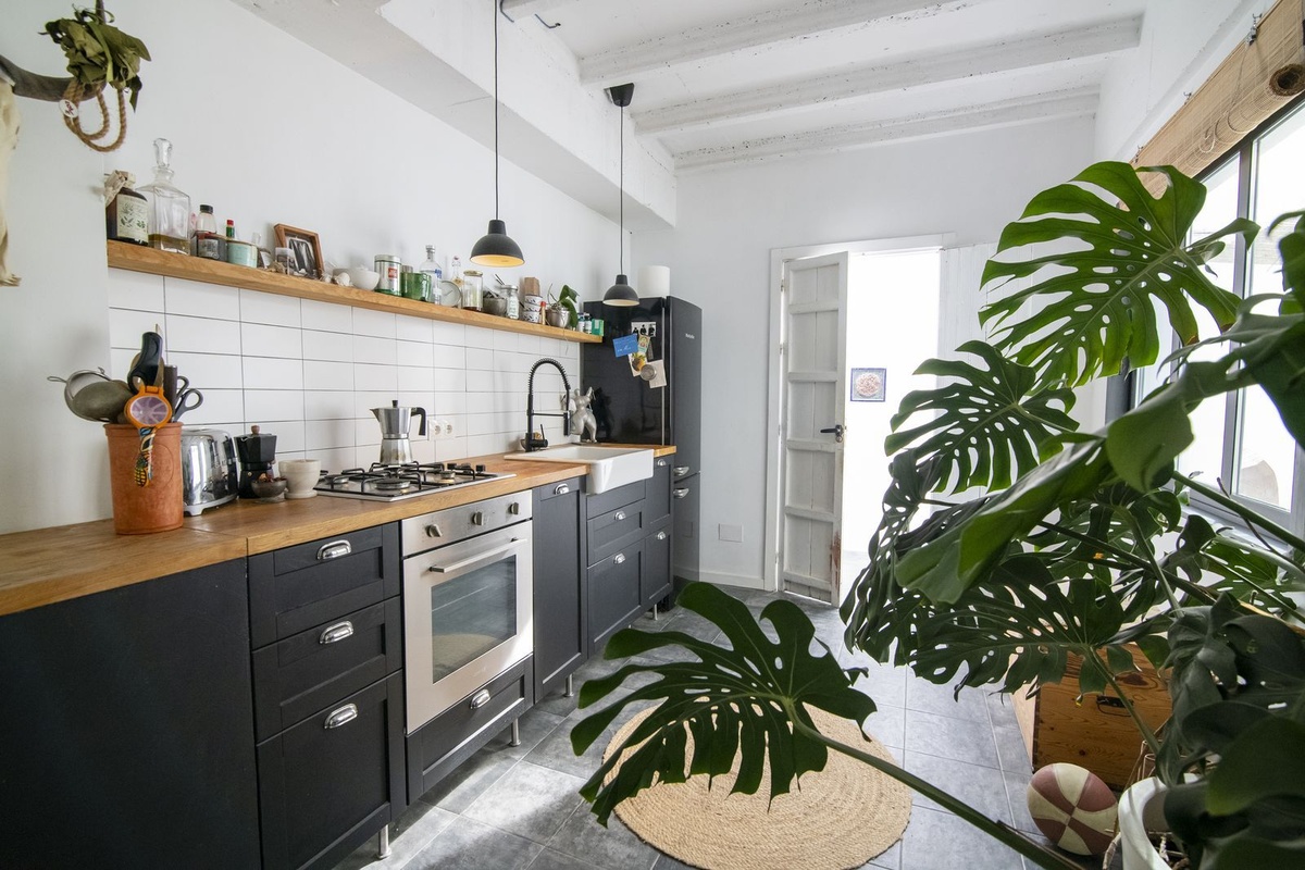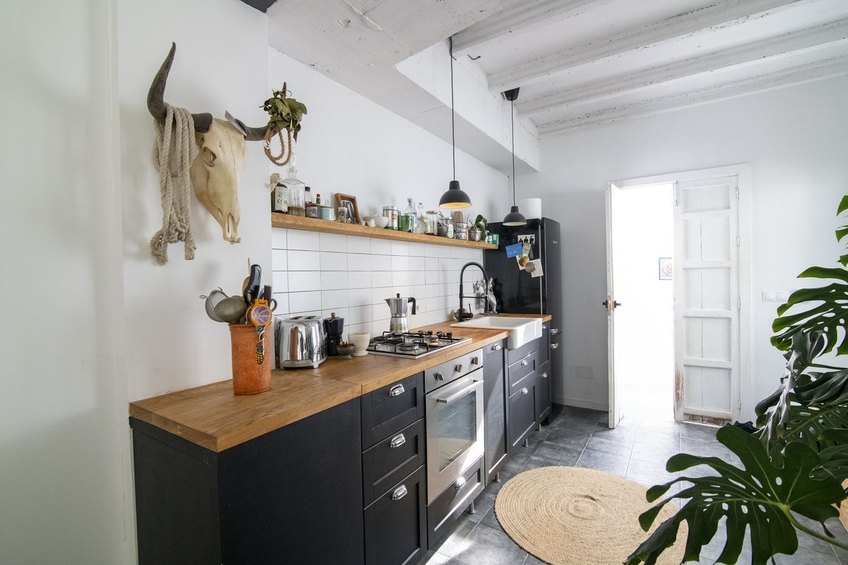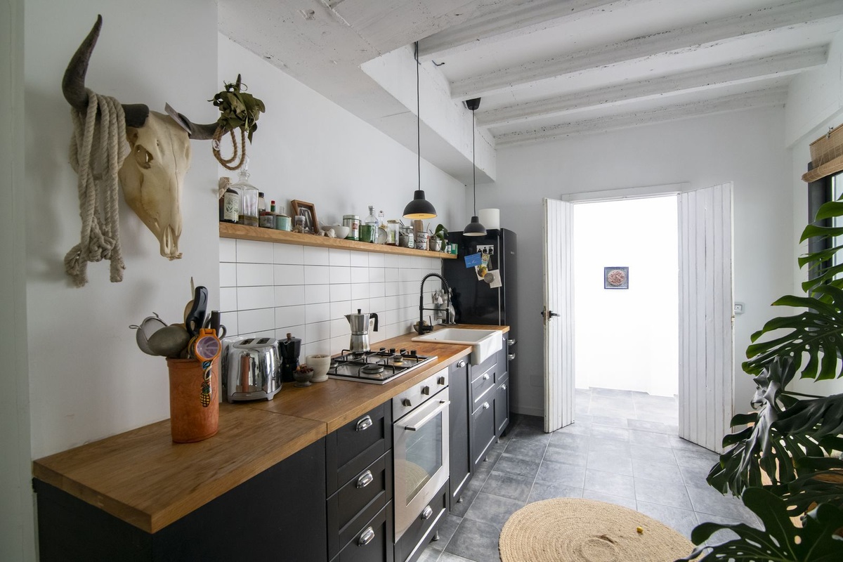 Adjacent is a professional-grade kitchen, fully equipped and designed for culinary enthusiasts, along with a guest bathroom.