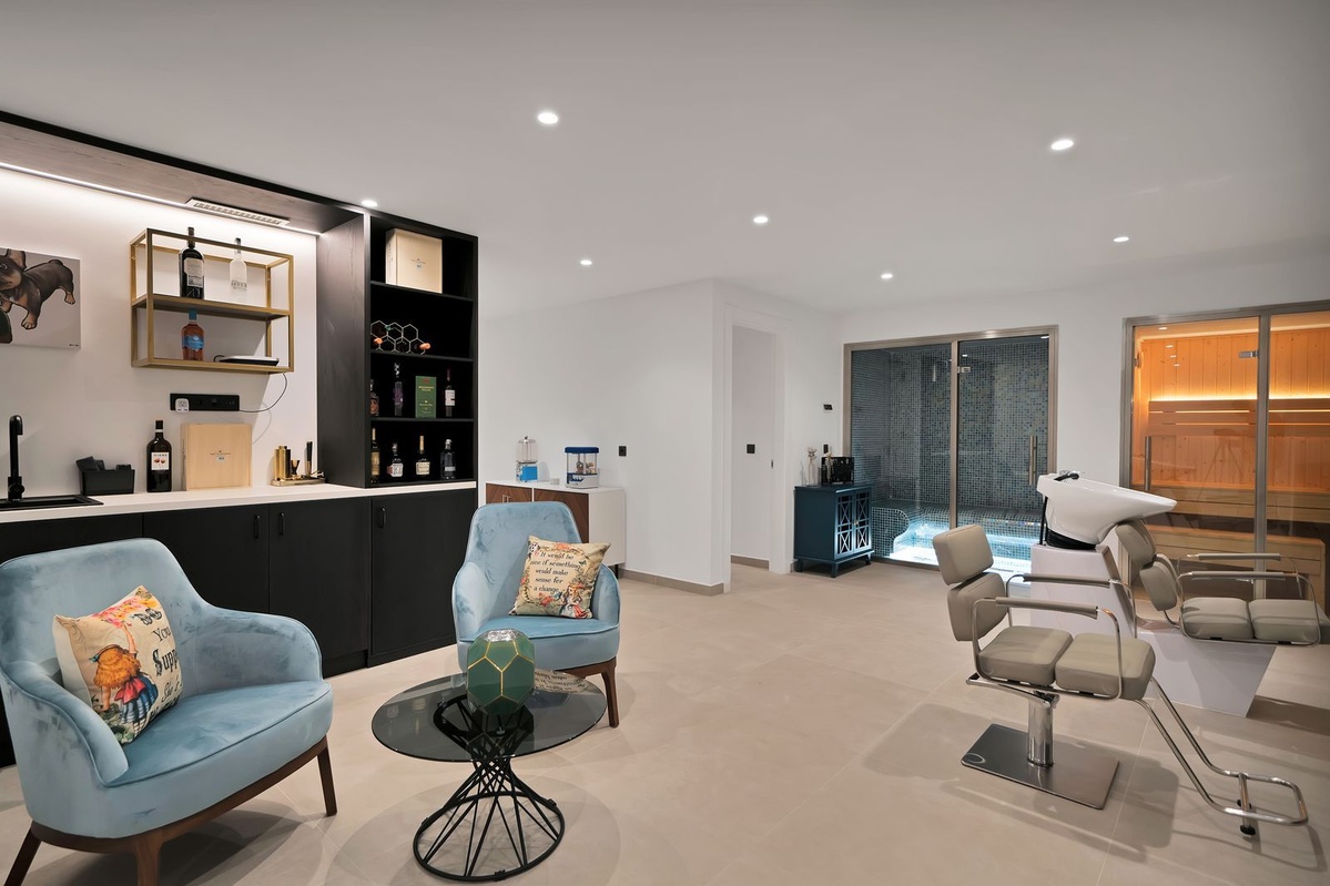 Luxury is evident in every detail, from the private spa, which includes a Turkish sauna and Swedish sauna, to the fully equipped gym with state-of-the-art fitness technology.