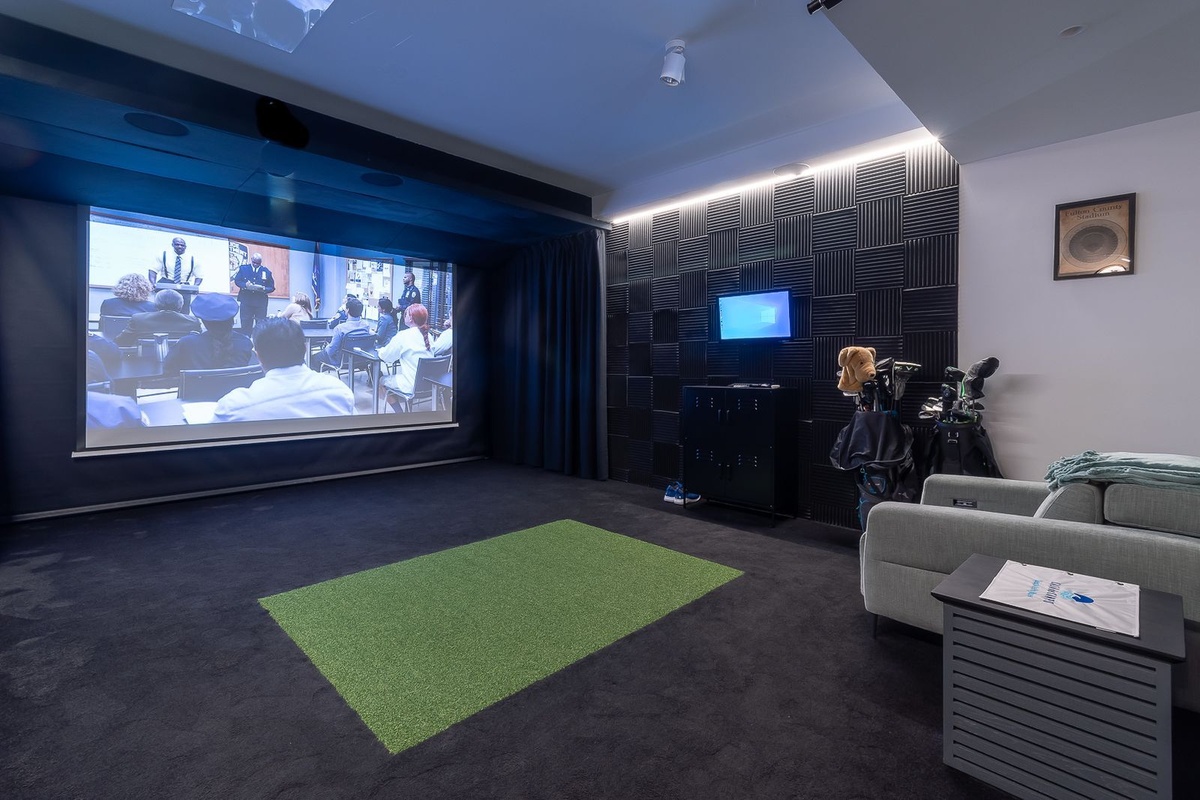 Designed for golf enthusiasts, the villa features putting greens in the garden and a professional golf simulator, offering a premium experience without leaving home.