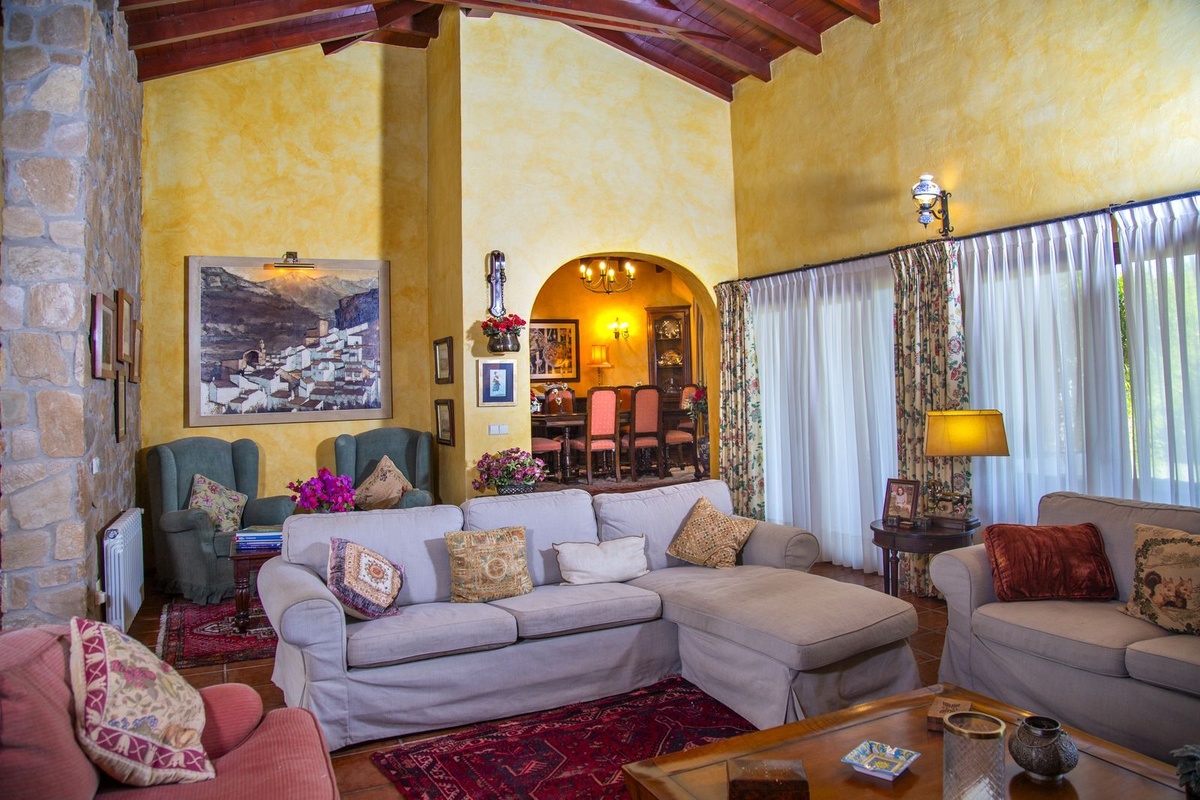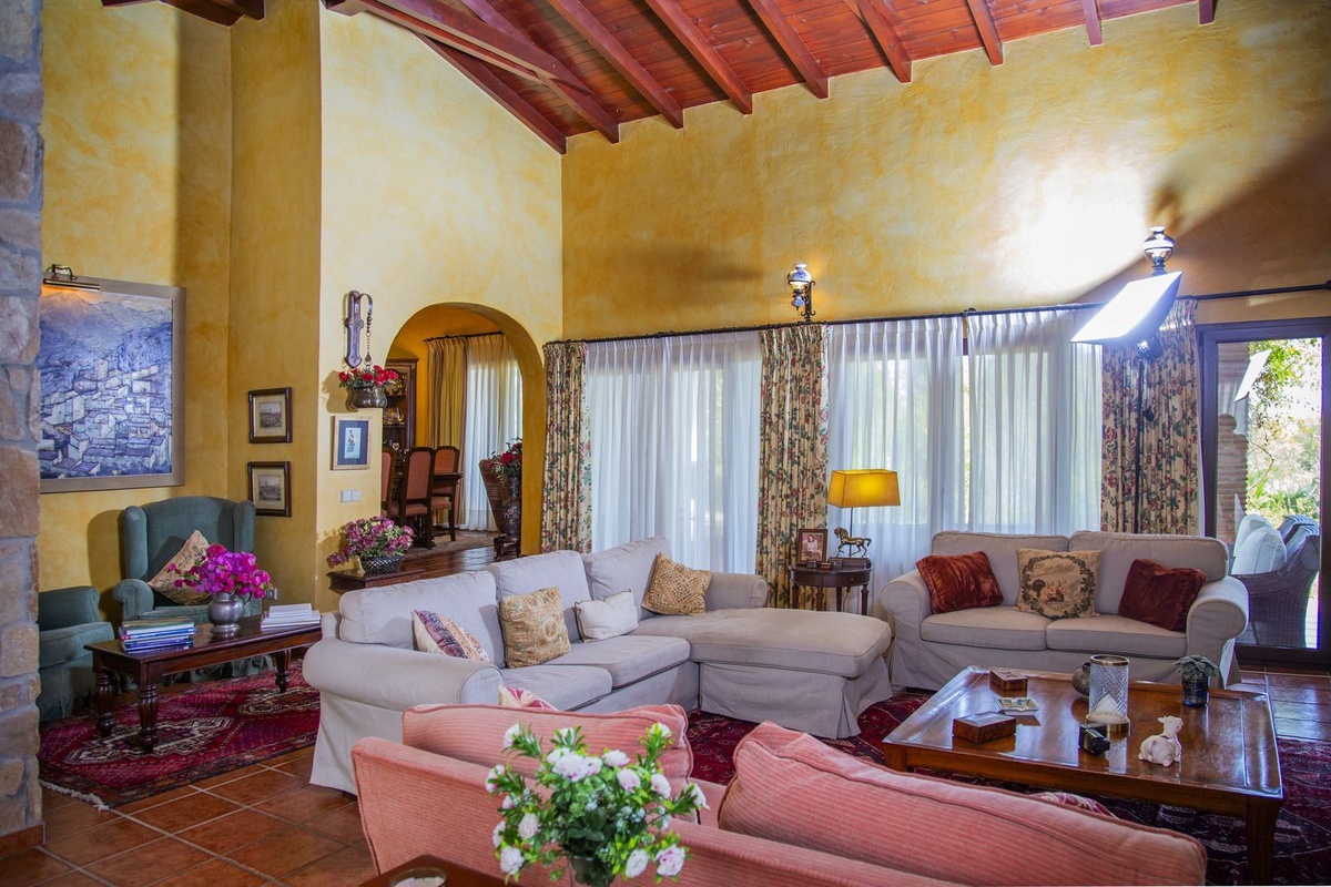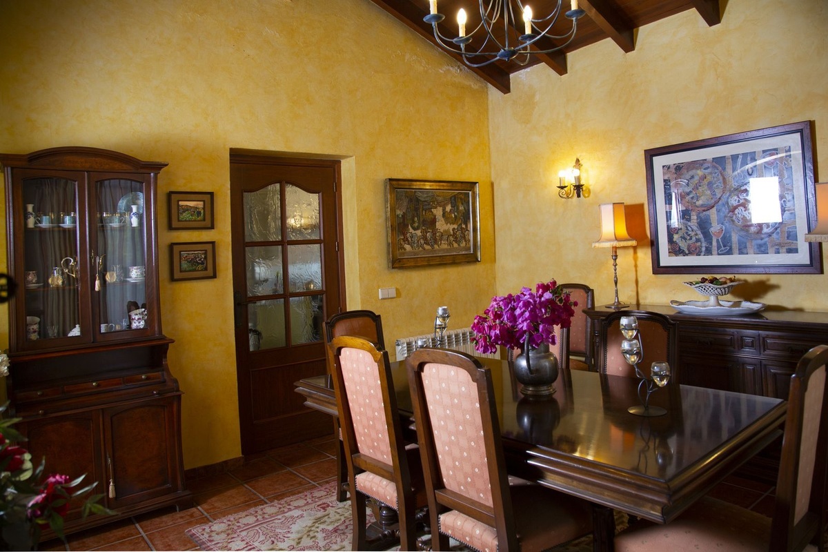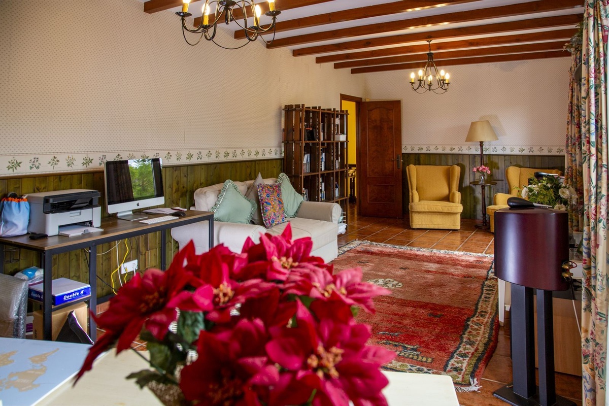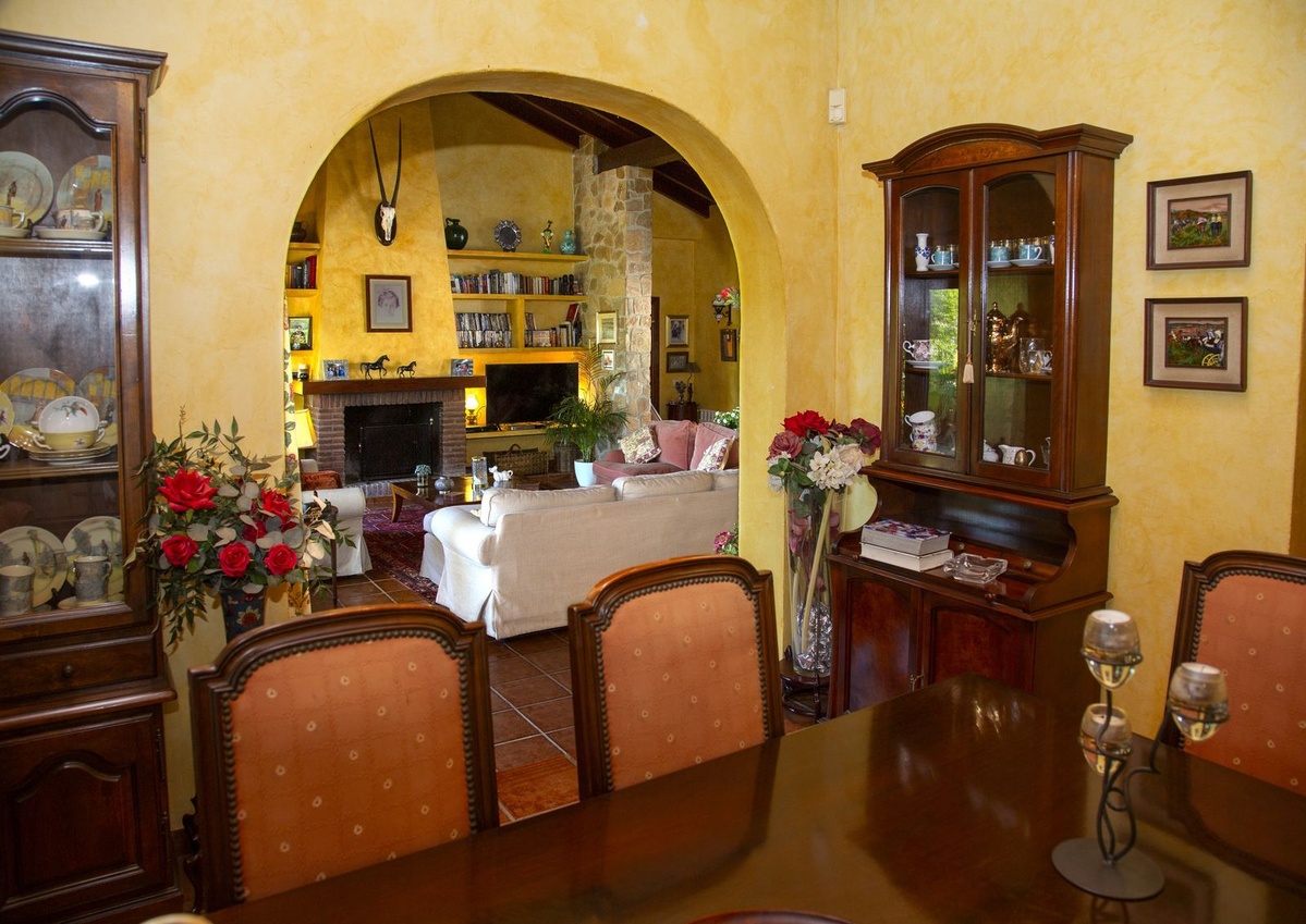 Villa with 6 bedrooms with 4 bathrooms and toilet. The property consists of 575 m2 built, as well as charming outdoor spaces, such as porches, terraces, patios totalling 144 square metres, and gardens throughout the property to enjoy different sensations, environments and views. The property is situated on a plot of 10.000 m2, where there are, apart from the house, wide spaces to enjoy different activities: the swimming pool area of 12 metres long, surrounded by a large bermudagrass lawn, to swim, sunbathe and relax or practice some sport on the high quality tennis court with night lighting . A building of 85 m2 independent of the house, formerly used as stables, is now converted into an office and workshop equipped with all the machinery and tools necessary for the maintenance of the estate. This building, if desired, could easily be converted into a guest or staff house.