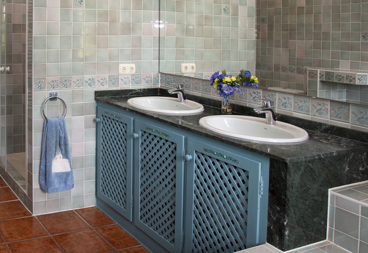 The property is distributed on two floors: on the ground floor, there is a large entrance hall with double height and wooden coffered ceiling, a guest toilet, the dining area, kitchen, office and living room. In the west wing there is a bedroom with bathroom ensuite, dressing room and direct access to the porch and garden and 2 bedrooms with a bathroom. In the east wing there is a bedroom with bathroom ensuite and private terrace with pergola, ideal for guests and the garage with space for two cars. All around the house there are different terraces, porches and designer patios.