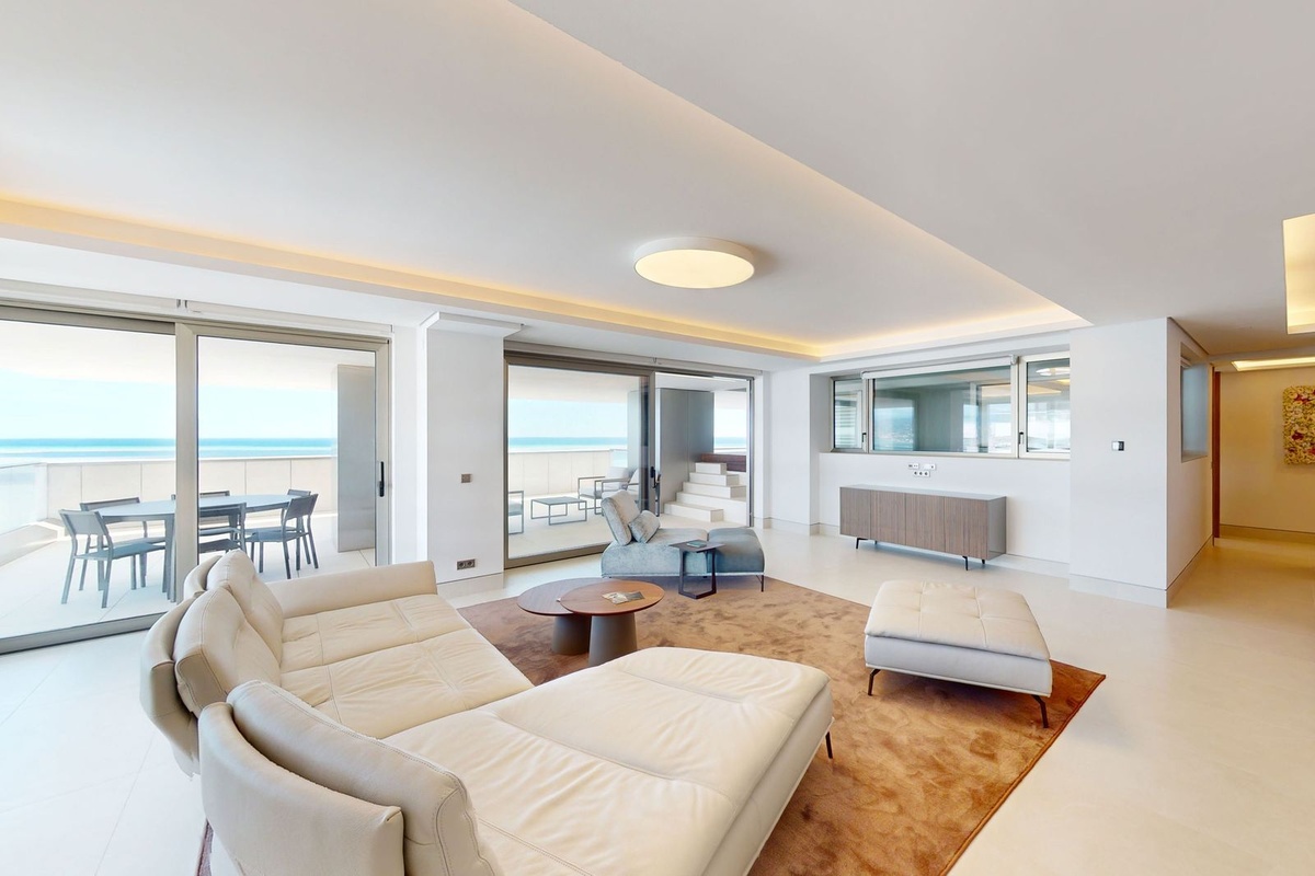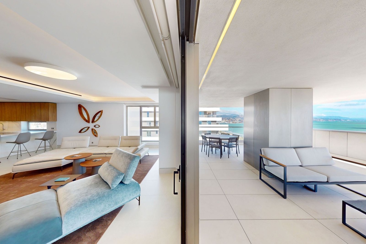Boasting panoramic front-line beach views, this 4-bedroom apartment is a masterpiece of design, offering an open-plan layout that seamlessly integrates modern luxury with stunning natural beauty. Every room is bathed in natural light, showcasing breath taking vistas of the Mediterranean coastline and the city of Malaga. With its expansive 500m² of living space, this residence truly feels like a villa in the sky.