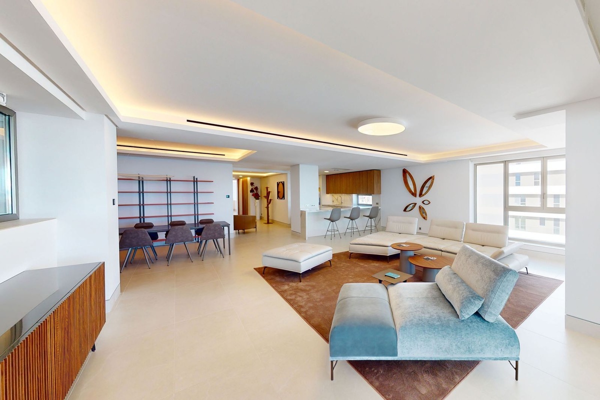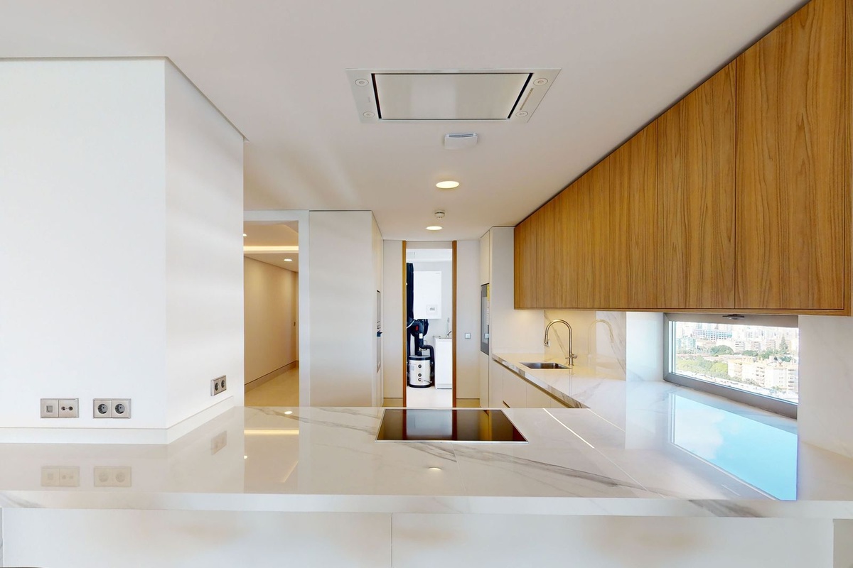 - Stunning Double-Width Layout: This expansive 18th-floor apartment spans two apartments, providing an open and airy internal living space of 370m2. Designed with luxury in mind, the interiors are finished to the highest standard. With a grand living area, a designer kitchen, and formal dining space, the apartment exudes sophistication at every turn. High ceilings and floor-to-ceiling windows ensure an abundance of natural light while framing spectacular views of the Mediterranean Sea, Malaga City and it's stunning coastline, and the surrounding mountains.