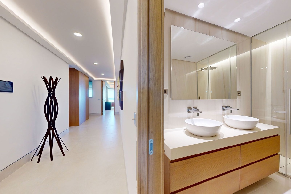 - Elegant Master Suite: The master bedroom offers a retreat-like atmosphere with its panoramic sea views, a lavish ensuite bathroom with high-end finishes and a substantial dressing room. The spaciousness and sea views make it an ideal space to relax and rejuvenate.