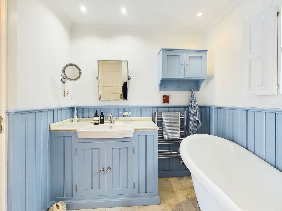 The master bedroom is located on the upper level and features an en suite bathroom with a stunning 'roll-top bath'. This bedroom has its own private terrace with a jacuzzi, perfect for relaxing while enjoying the beautiful views. On the lower level, there are two guest bedrooms. Bedroom 3 has a bathroom with a steam shower, and the second bedroom also has an en suite bathroom with a large walk-in shower.