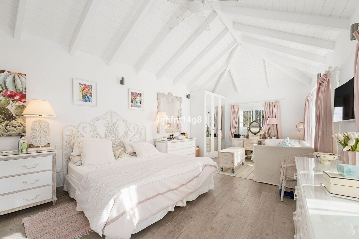 A few steps from the main villa takes you to a separate guest suite, which could also serve as the master bedroom if desired. This suite is beautifully spacious, featuring high ceilings and the same stunning wooden beams as seen throughout the villa.