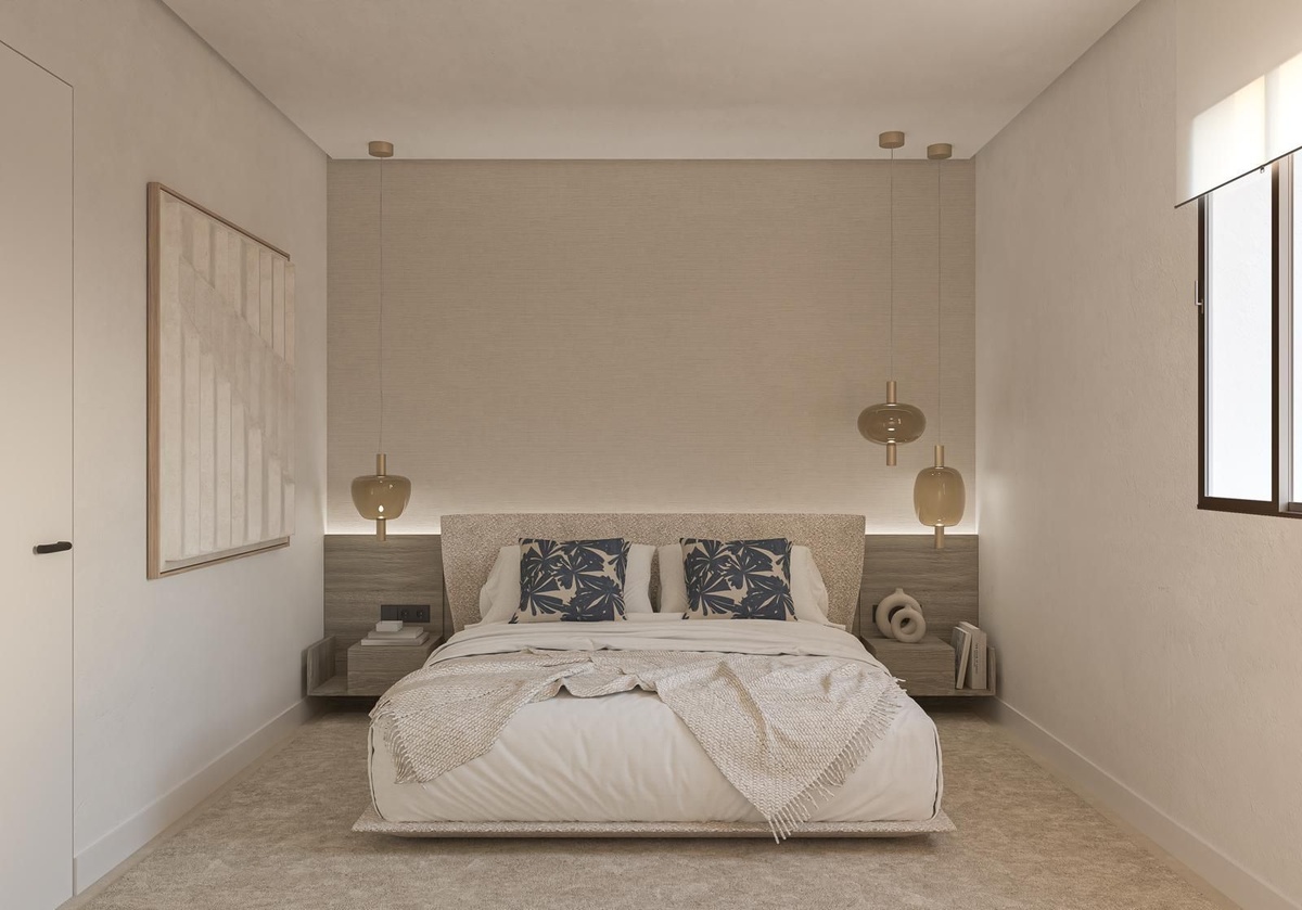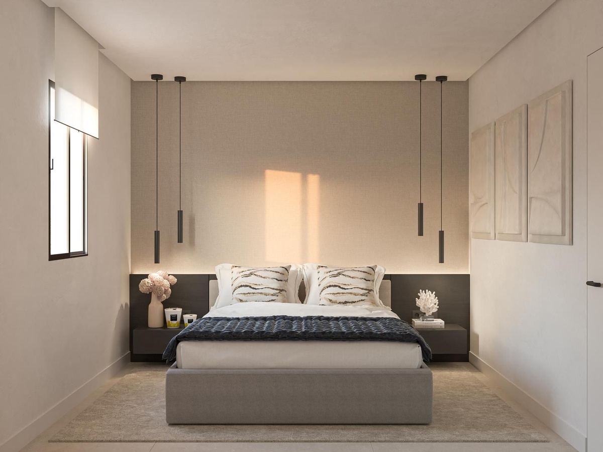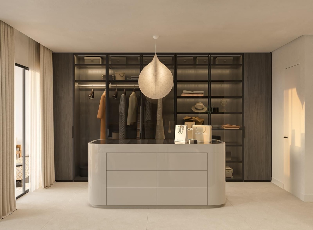 This property is been designed with the owner in mind, originally a four-bedroom property has now been made into a three-bedroom by opening up two bedrooms into one, resulting in one of the most awe-inspiring master bedrooms. With a 15 square meter custom made open wardrobe area, state of the art Porcelanosa bathroom suite, media TV wall with fire place, sea views of Africa from the bed, and a beautifully furnished full width private terrace. A further two stunning double bedrooms and bathroom complete the first floor.
