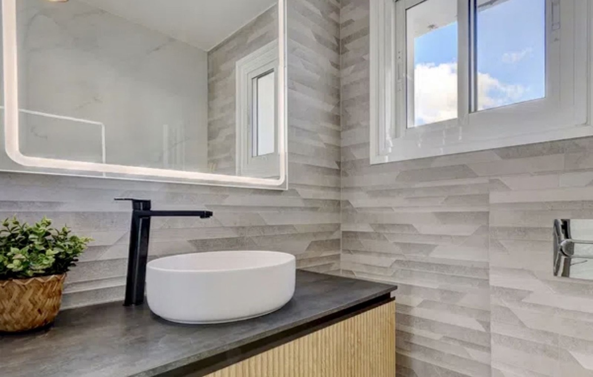 Exit to the private garden and pool area. The villa features a beautiful pool area with ample space for sunbathing, plus a barbecue area ideal for entertaining family and friends. For even more spectacular views, head up to the rooftop solarium where you can relax with a refreshing drink while enjoying the beauty of the Mediterranean, a wonderful place to create unforgettable memories.