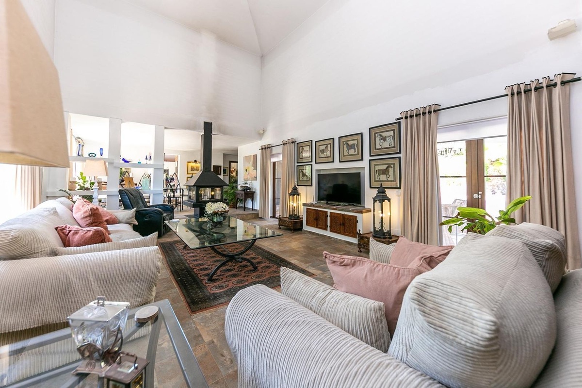 The property consists of a spacious main house built entirely on one level, offering 460 m² distributed across 4 large bedrooms with en-suite bathrooms, a bright living room with high ceilings and fireplace, and a generous kitchen also featuring a fireplace.