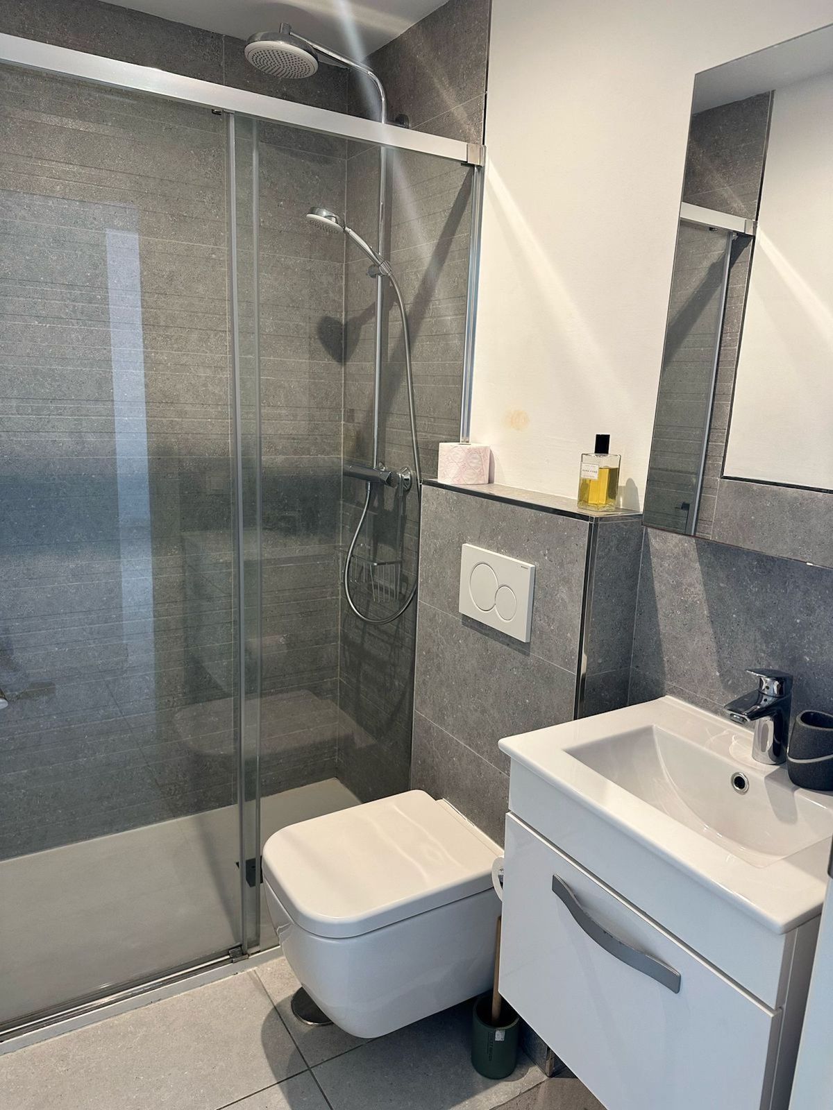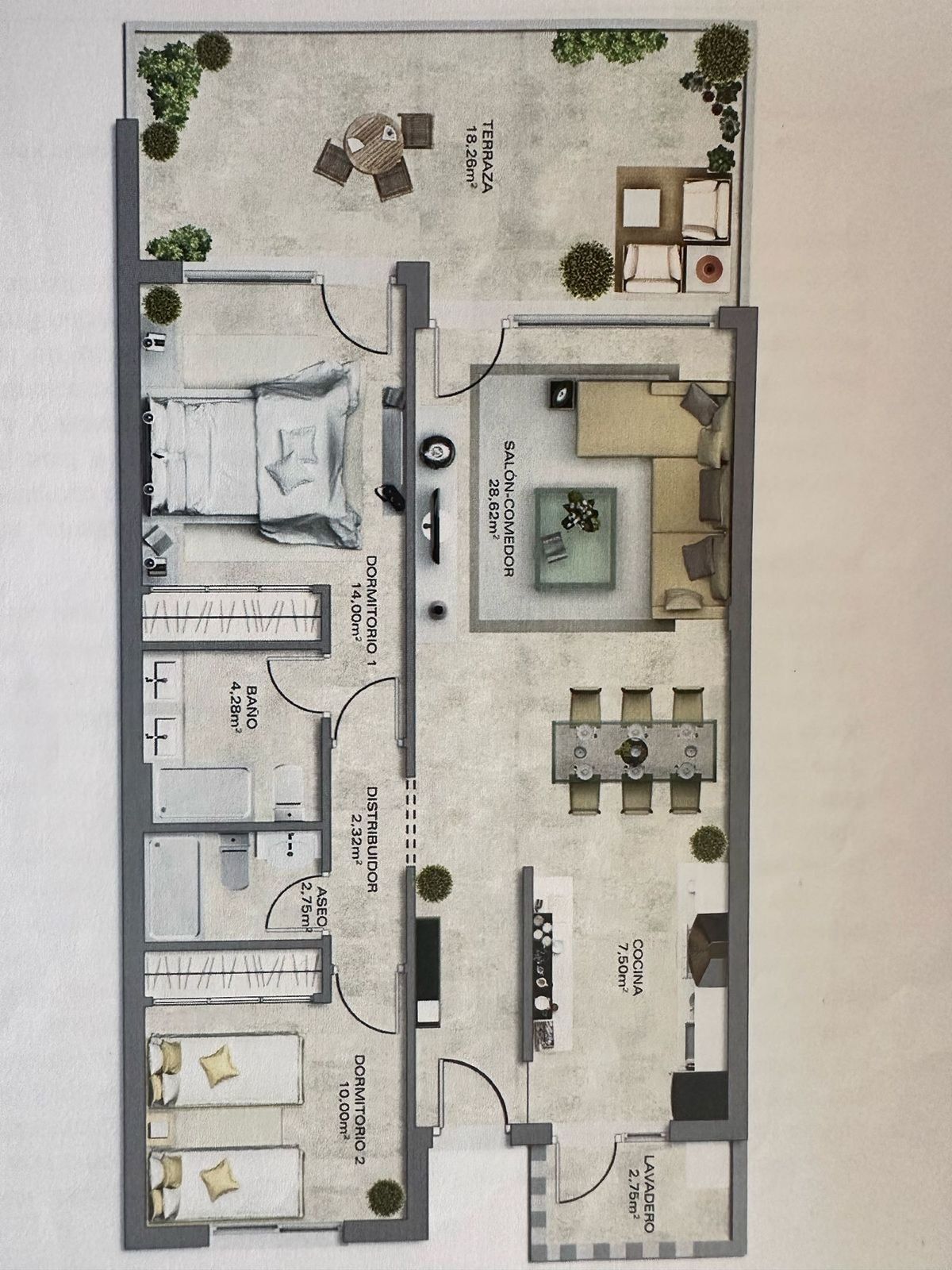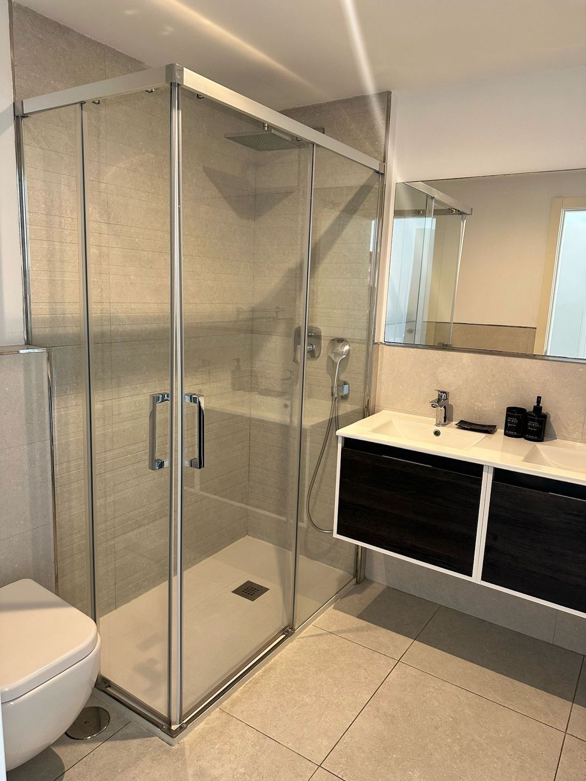 The apartment features two spacious bedrooms and two bathrooms. The living-dining area, filled with natural light, offers a comfortable and elegant space. The kitchen is fully equipped and includes a practical separate laundry room. Additionally, the property is fitted with air conditioning (hot/cold), ensuring comfort throughout the year. It also comes with an underground parking space and a private storage room.