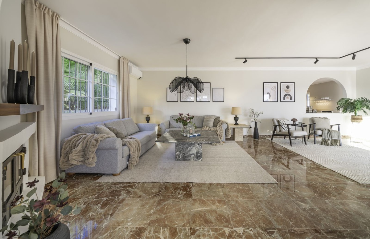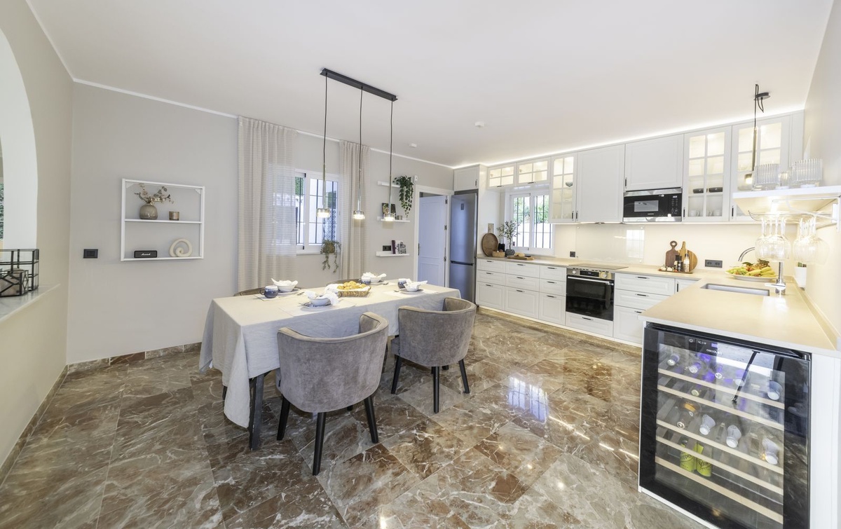 The entire interior of the house, spanning 190m2, has been tastefully renovated with stylish colors, maintaining a balance between modern elegance and Andalusian architecture.