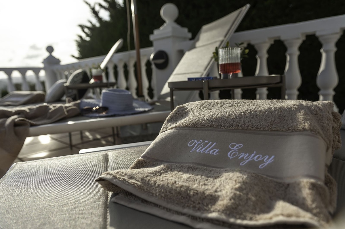 The villa also boasts a large swimming pool and the beautiful terrace is partially covered to provide shade from the sun. The large, luxurious kitchen has been completely refurbished.