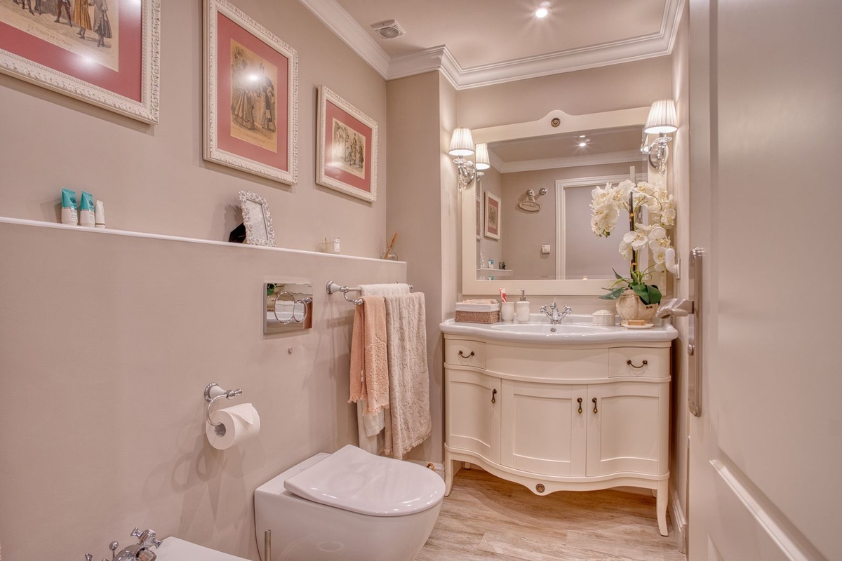 On the first floor, there are two large bedrooms, both with en-suite bathrooms. The master bedroom also enjoys access to its own private terrace, offering a peaceful outdoor retreat.