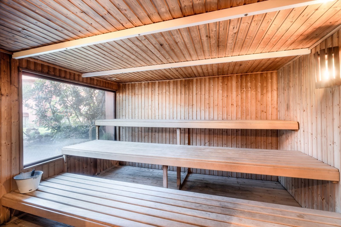 The community boasts two gyms, including a cardio zone, two spas with his-and-hers saunas, and two stunning communal pools with cascading waterfalls.