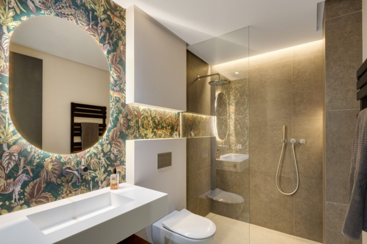 Tailored for year-round enjoyment, the outdoor spaces include expansive terraces perfect for alfresco dining, a private pool, and a stylish pergola. A fully equipped outdoor kitchenette with a built-in BBQ enhances the entertainment potential, making it an ideal space for hosting gatherings. The floating staircase leads to the first floor, where five luxurious bedrooms provide a haven of comfort and privacy. The master suite stands out with its generous proportions, direct terrace access, and an opulent en-suite bathroom that embodies refined living.