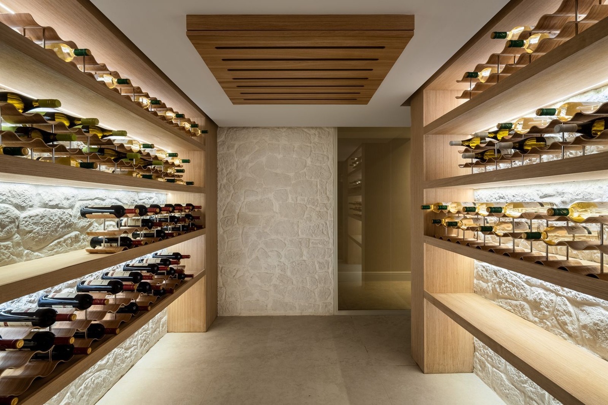 The villa boasts multiple lounges, an exquisite custom kitchen, a state-of-the-art home cinema, wine bodega, and a fully equipped gym and spa area.