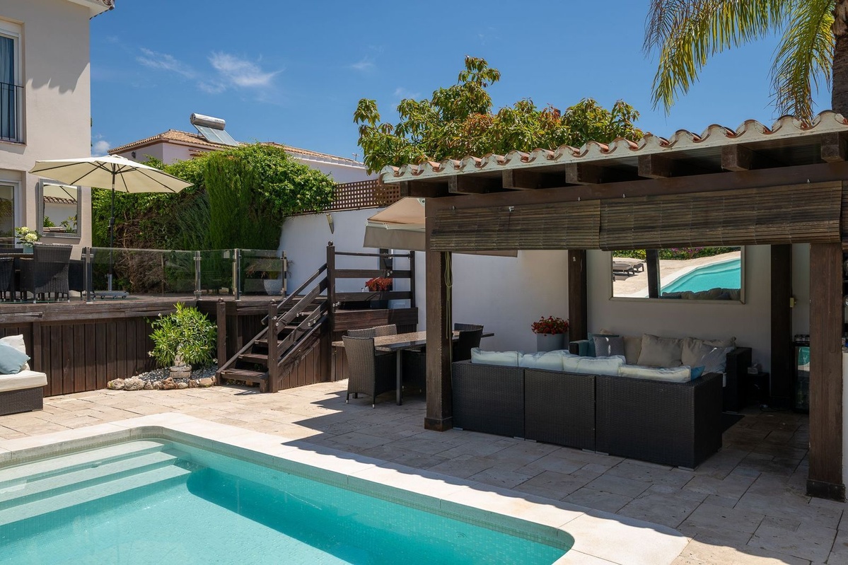 Located within a secure gated urbanisation with a security barrier, the villa is just a 15-minute walk from the iconic Marbella Arch. The renowned Trocadero Beach and restaurant are only a few minutes away by car, and the area is surrounded by premier golf courses including Rio Real, Santa Clara, and Santa Maria Golf.