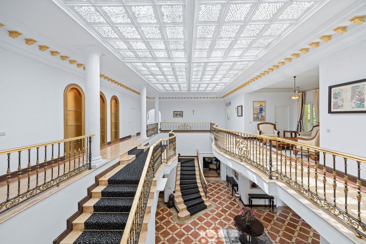 The estate sits on over 4,000 square meters of private grounds, and offers more than 1.500 square meters of interior space laid out across three levels. The main floor is designed for entertaining, with generous reception rooms, elegant ceilings, and natural light pouring in through large windows that open to the terraces and garden beyond.