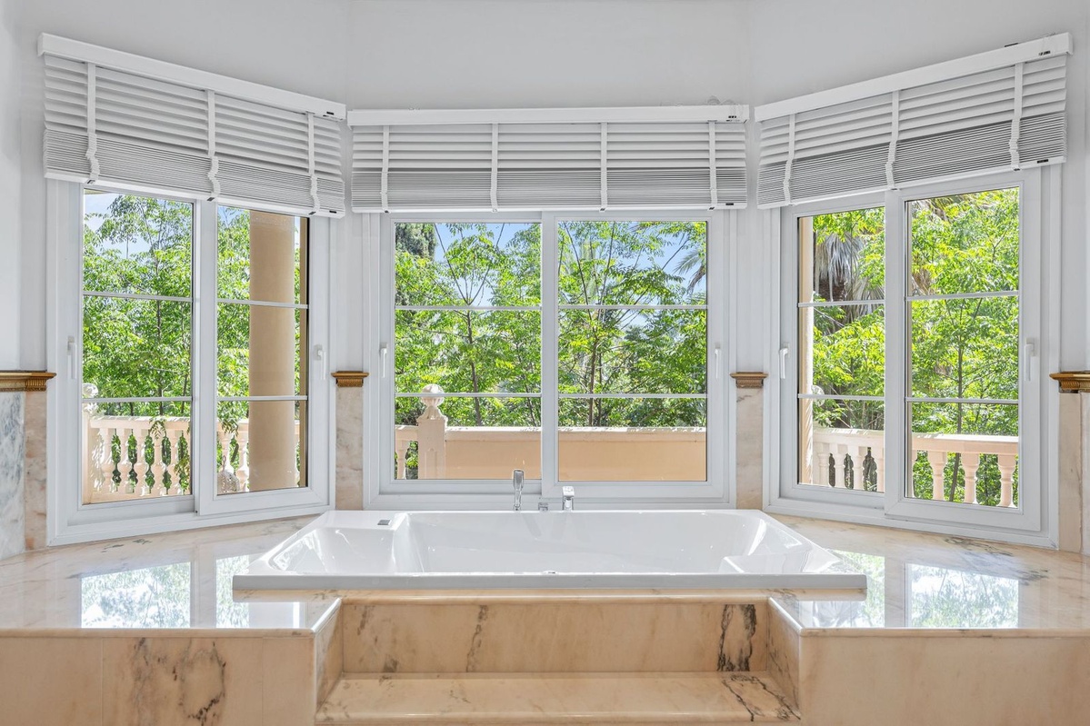 Tucked away in one of Marbella’s most discreet and sought-after residential areas, this timeless estate blends classical European elegance with the calm of lush, mature gardens. Just a few minutes from the heart of town and landmarks like Puente Romano Resort and the Marbella Club Hotel, it offers a rare mix of seclusion and convenience.
