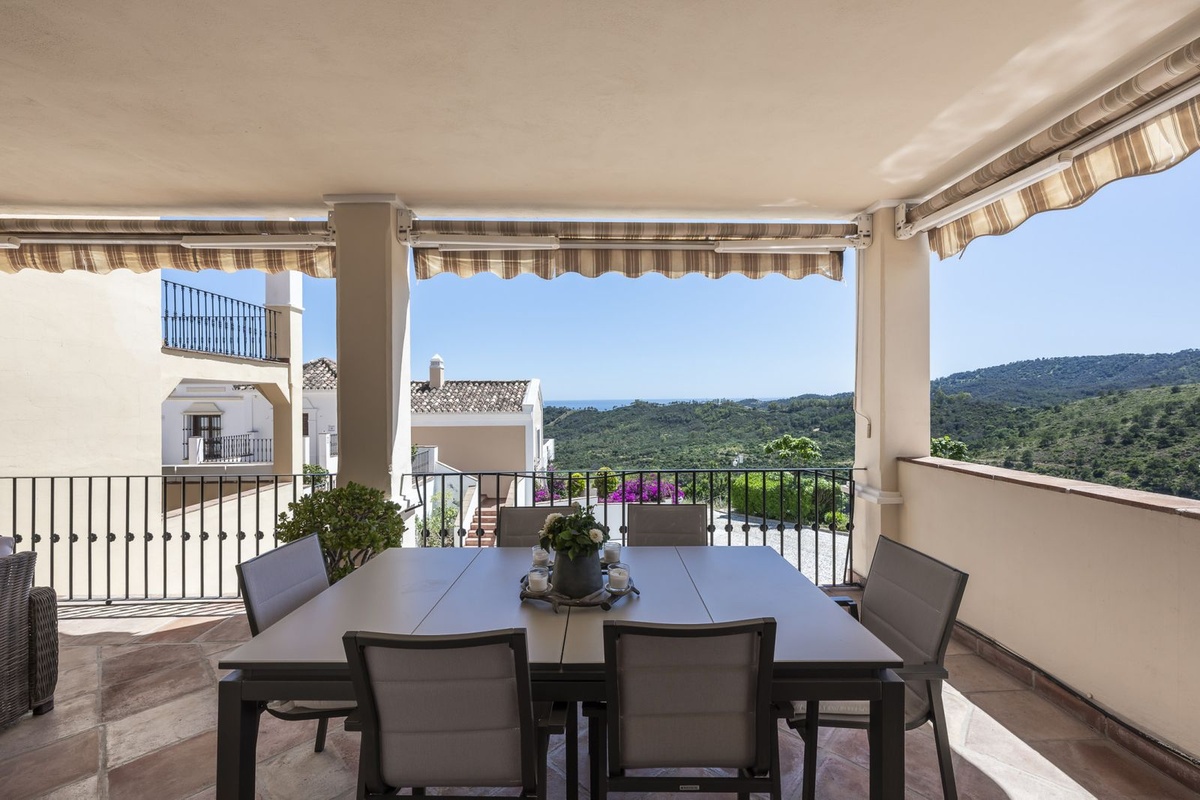 Set in the peaceful hills of Monte Mayor, this elegant four-bedroom townhouse offers a secure and scenic lifestyle just a short drive from the coast. Located in Benahavis, the property enjoys easy access to the A-7 coast road, putting Estepona and Guadalmina within 20 minutes by car. The area is popular with families and second-home owners who appreciate privacy, natural surroundings, and good connections to international schools, golf courses, and nearby beaches. You are also close to sports clubs, supermarkets, hospitals, and other essential services. The property is part of a gated community with 24-hour security, cameras, and communal facilities, including a garden, pool, and garage.