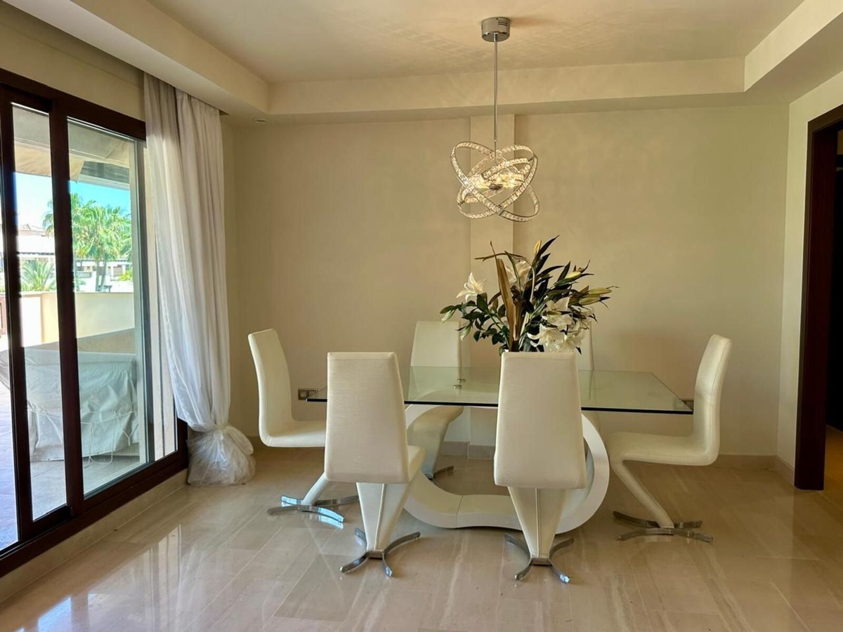 Welcome to this stunning three bedroom, three bathroom duplex penthouse located in Medina de Banus, a prestigious gated community of Nueva ANdalucia, just a short walk from the famous Marina of Puerto Banús.