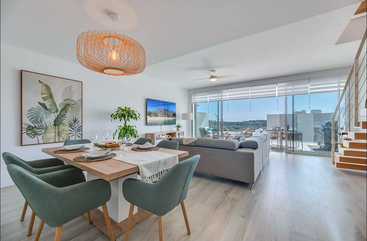 Newly built townhouse located in the Oceana View urbanization, in Cancelada, Estepona. The property features modern design, sea and mountain views, quality finishes, and a convenient location just 5 minutes by car from the beach.