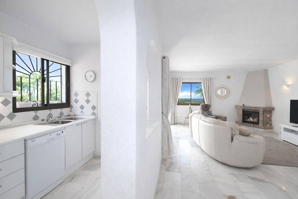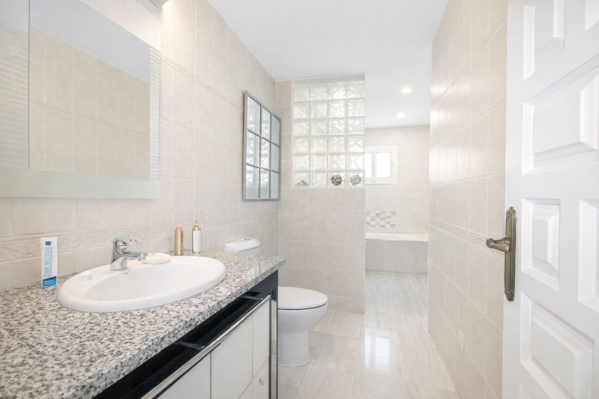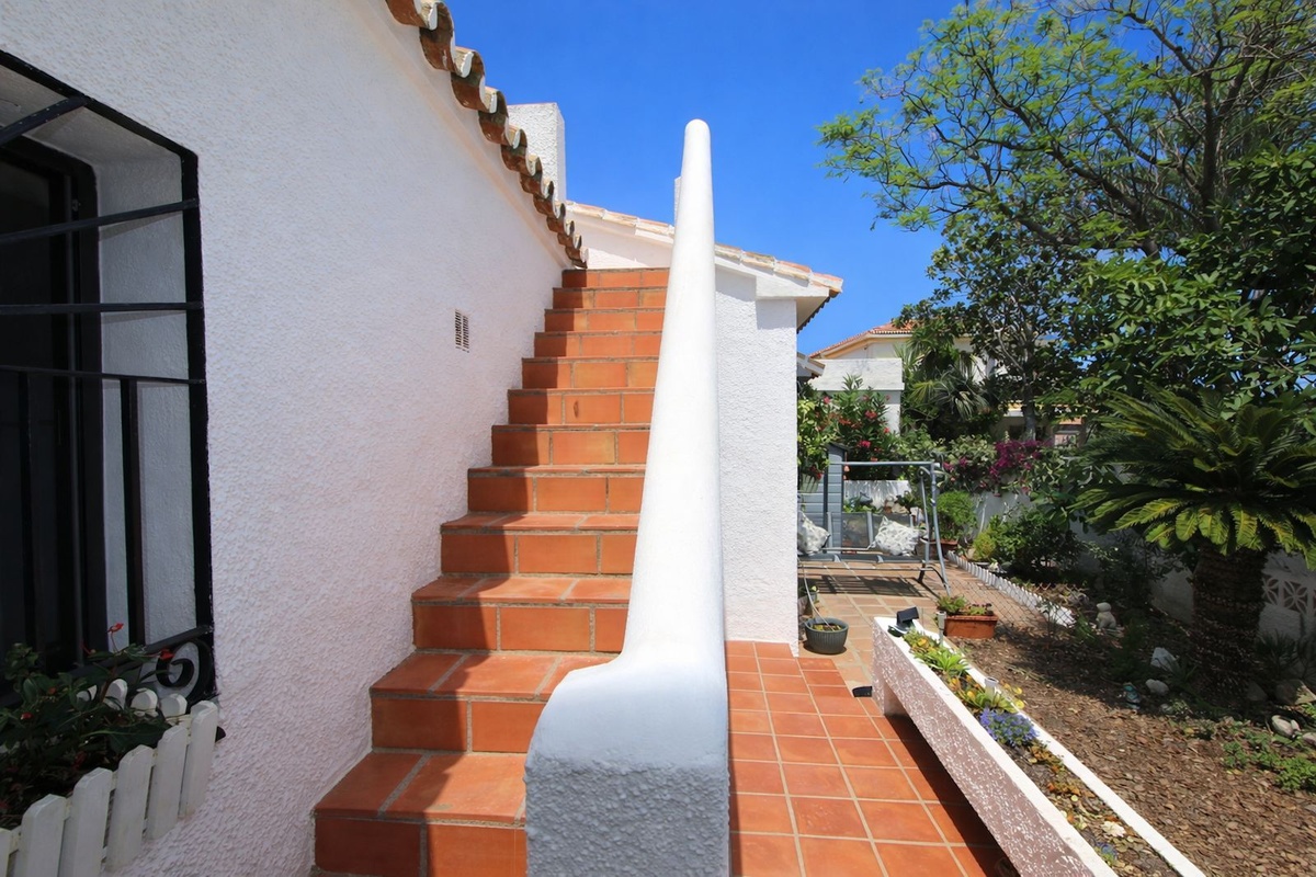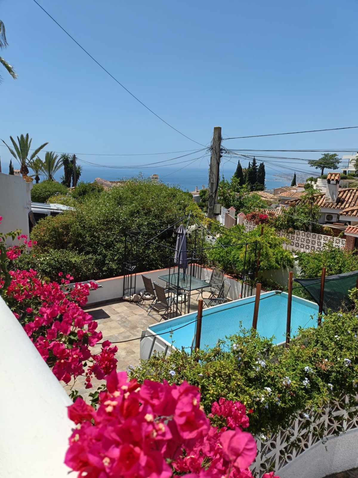 This is a lovely family villa in a very desirable area, La Capellania, Benalmadena, located on a short Cul De Sac in a very quiet and secure residential area with stunning sea and mountain views. The orientation is fabulous and there is off road parking plus a large front walled yard with above ground pool and multiple sitting areas. The property has manicured and easy maintained gardens on three sides and there is also a private solarium accessed via an easy climb straight staircase which offers panoramic sea and mountain views.