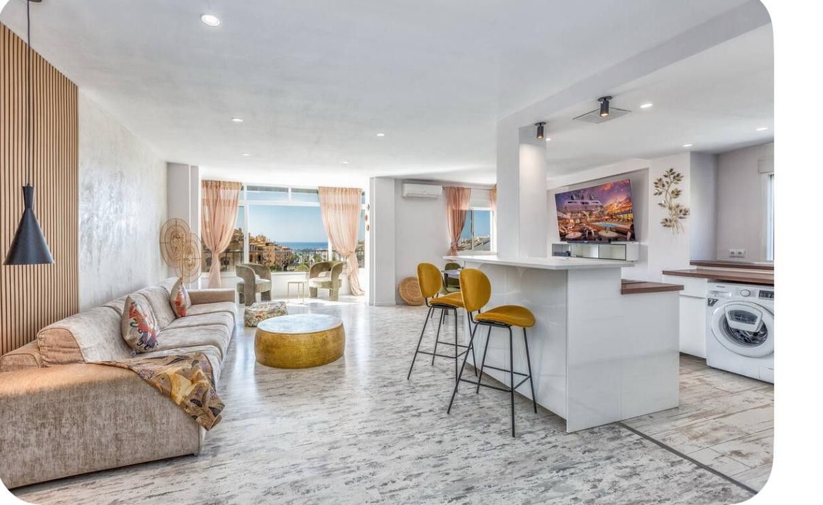 Step into sun-soaked living with this south-facing apartment for rent in San Pedro de Alcántara. Designed for comfort and convenience, the 110-square-meter interior features two spacious bedrooms and two elegant bathrooms. The home is fully furnished and features a modern kitchen.